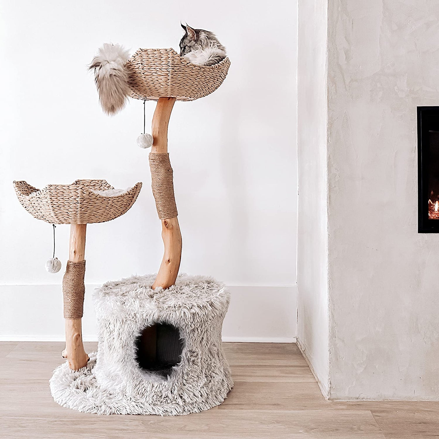 MAU Modern Cat Tree Tower for Large Cats, Real Branch Luxury Cat Condo, Wood Cat Tower, Cat Scratching Tree, Cat Condo, Cat Lover Gift, Luxury Cat, Cat Gifts by Mau Lifestyle