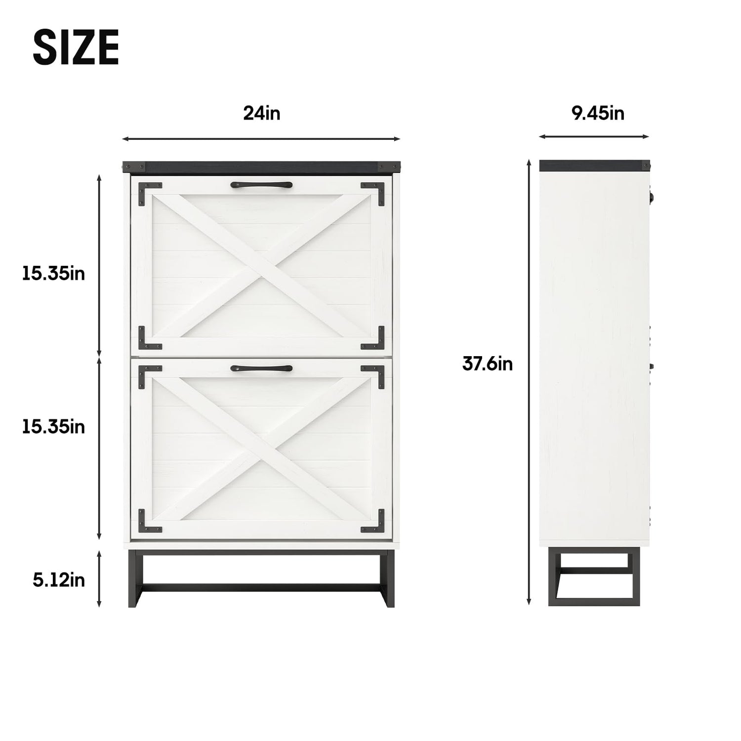 Maupvit 24" W Farmhouse Shoe Cabinet Storage for Entryway, Freestanding Organizer with 2 Flip Drawers, Narrow Shoe Rack Cabinet with Metal Corner Decoration, White