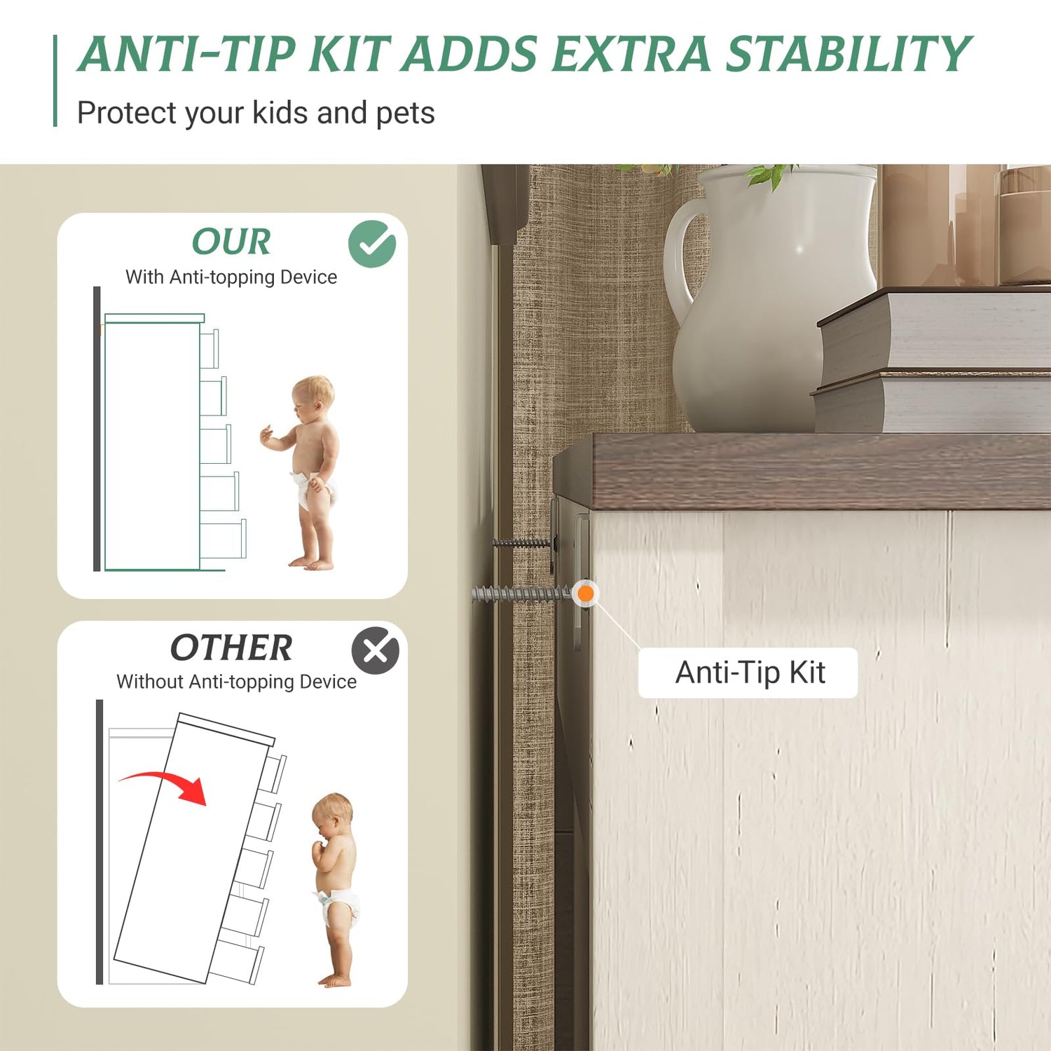 - Sturdy Support & Anti-Tipping Safety: This wooden dresser features 2 small drawers and 4 large drawers, supported by a sturdy base with two L-shaped anti-tip devices underneath for enhanced stability. Two additional L-shaped anti-tip devices are included on the back to securely anchor the chest of drawers to the wall, ensuring added safety for your home