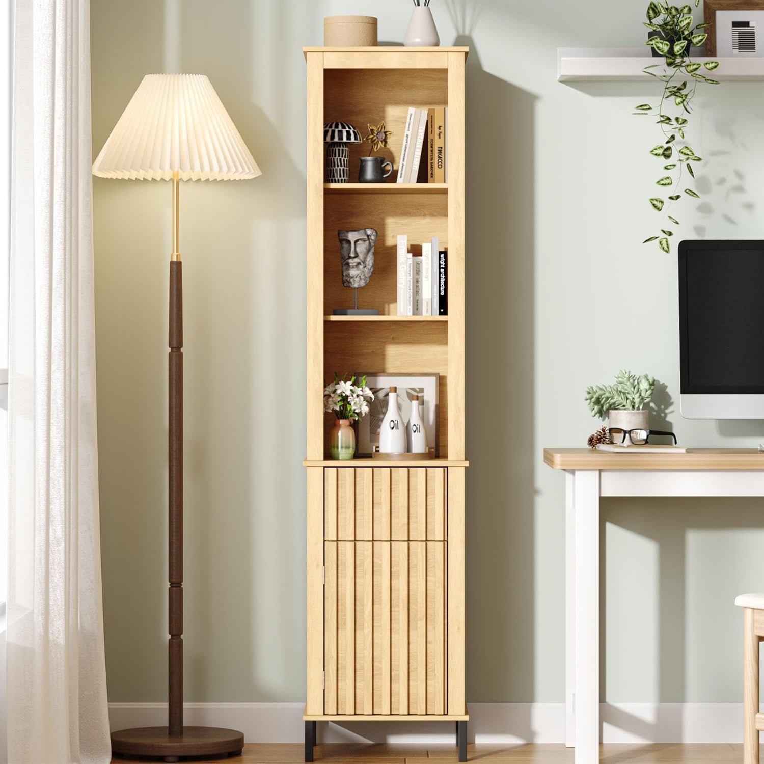 Maupvit 68" Tall Bathroom Storage Cabinet, Boho Wood Storage Cabinet Freestanding, Home Space Saving Organizer with Fluted Door & Drawer for Living Room, Dining Room, Kitchen, Utility Room