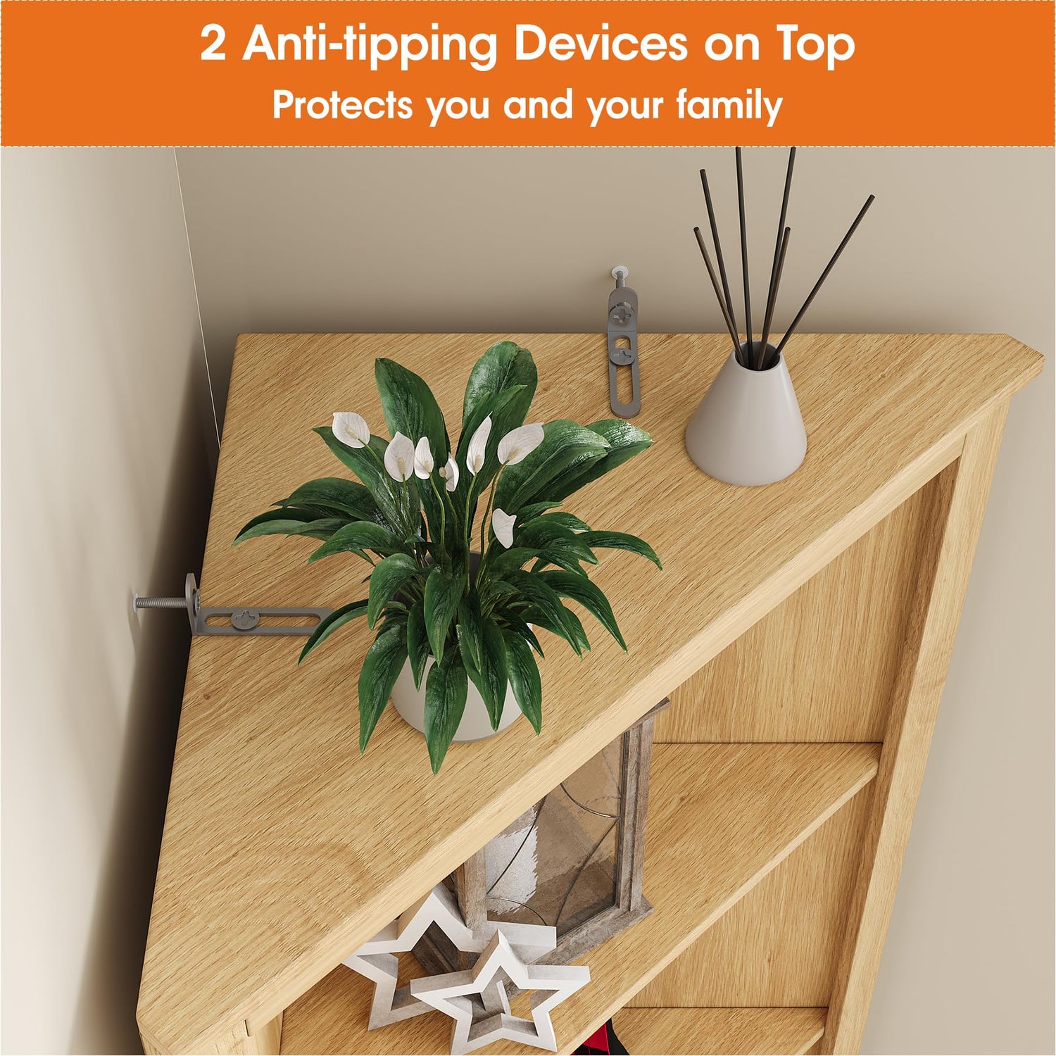 - [Stability and Security]: The 90° right-angle design allows corner cabinets to be installed flush between the corners of two walls. Equipped with a sturdy base and 2 anti-tipper, the anti-tip accessories can firmly fix the cabinet organizer in place, ensuring stability and preventing shaking. Protect the safety of you and your family, so even if there are naughty pets at home, you don't have to worry about it falling over