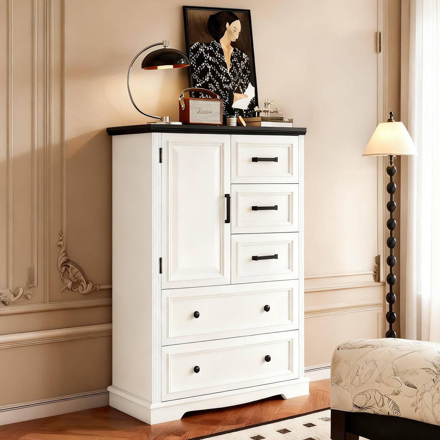 - Elevated Storage Solution, Exuding Elegance: The Maupvit 5 drawer dresser offers an upgraded storage option, tailored for those who pursue perfection in organization. Its classic color of white and brown hues not only enhances the aesthetic of bedrooms, living rooms, or entryways but also introduces a subtle touch of luxury