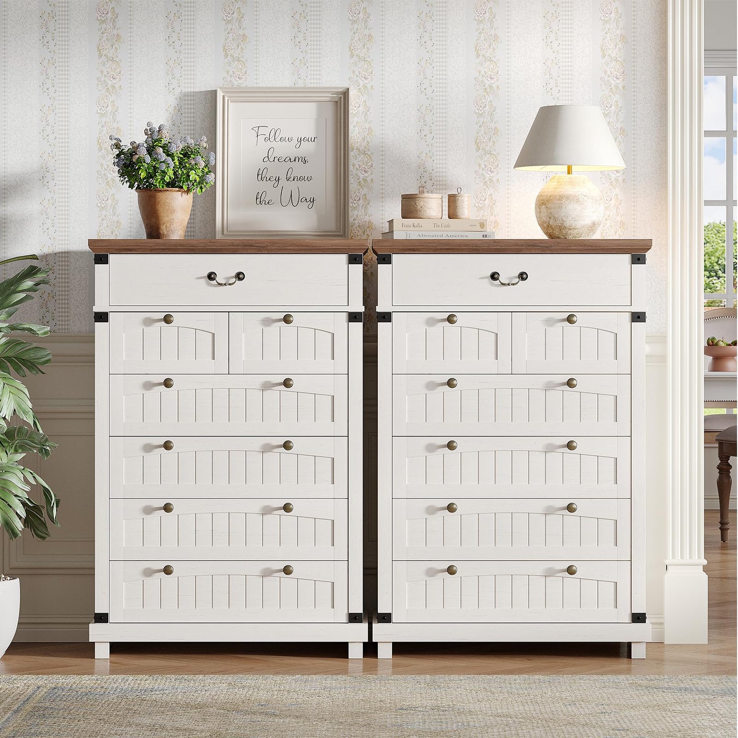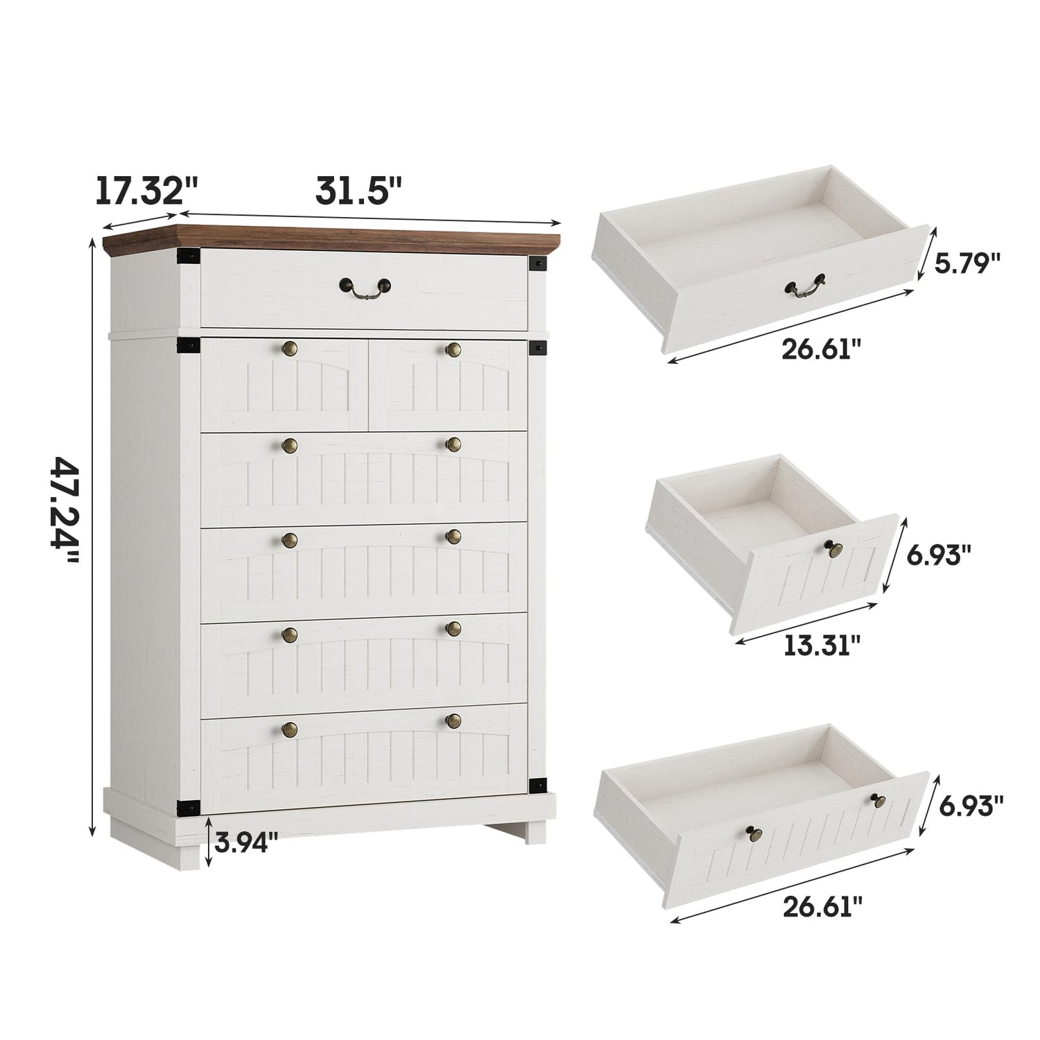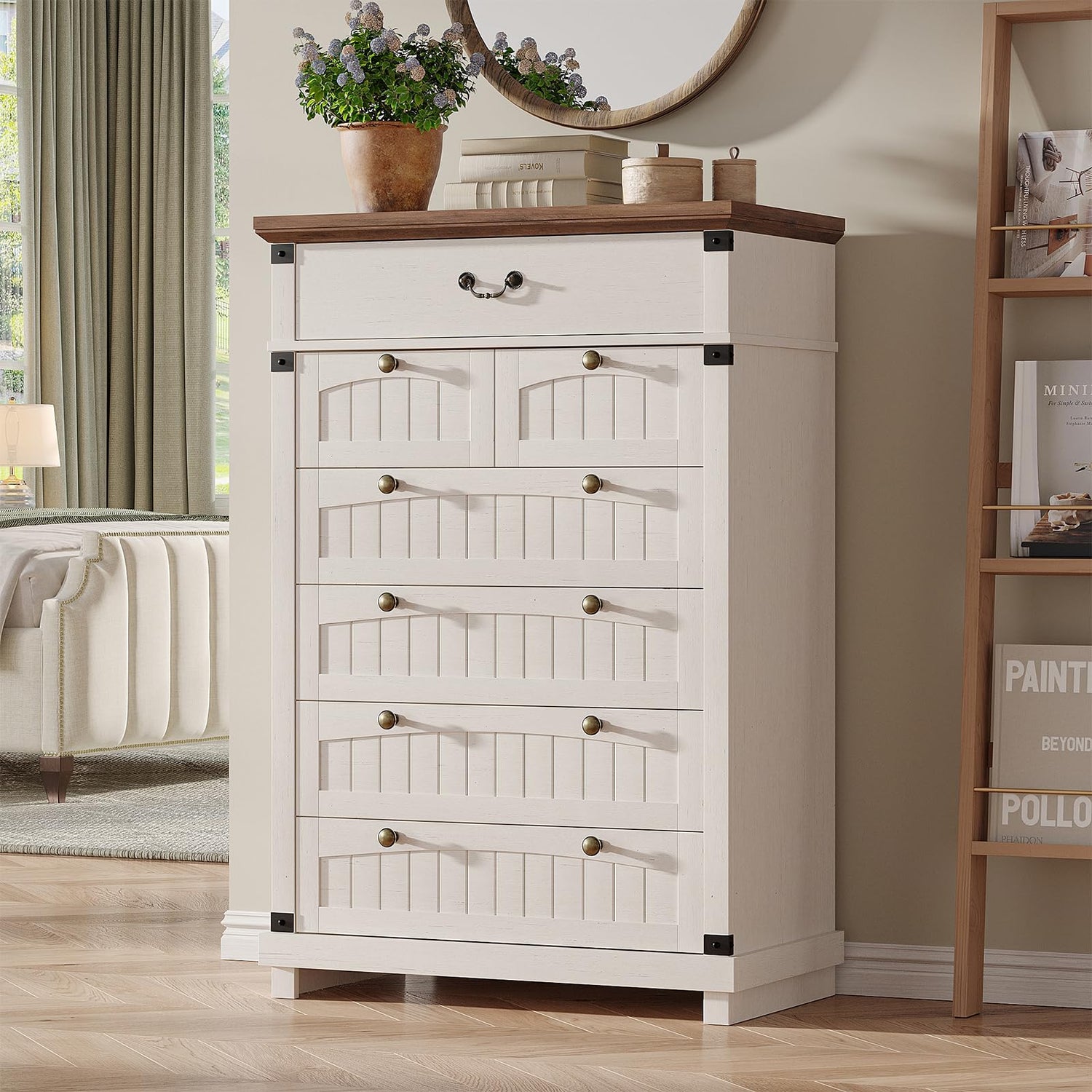 - Farmhouse Charm Never Goes Out of Style:This 6-layer, 7-drawer cabinet boasts distinctive charm, with the farmhouse-style composite wooden panels on the drawers and the farmhouse-style drawer handles as its highlights. The composite wooden panels feature natural textures and a simple, unrefined quality, as if they have accumulated the peaceful moments of the countryside, exuding a strong farmhouse vibe in every inch. The matching farmhouse-style drawer handles, with their retro and unique shapes, complement the panels perfectly, together adding a warm and inviting homely atmosphere to the dresser.