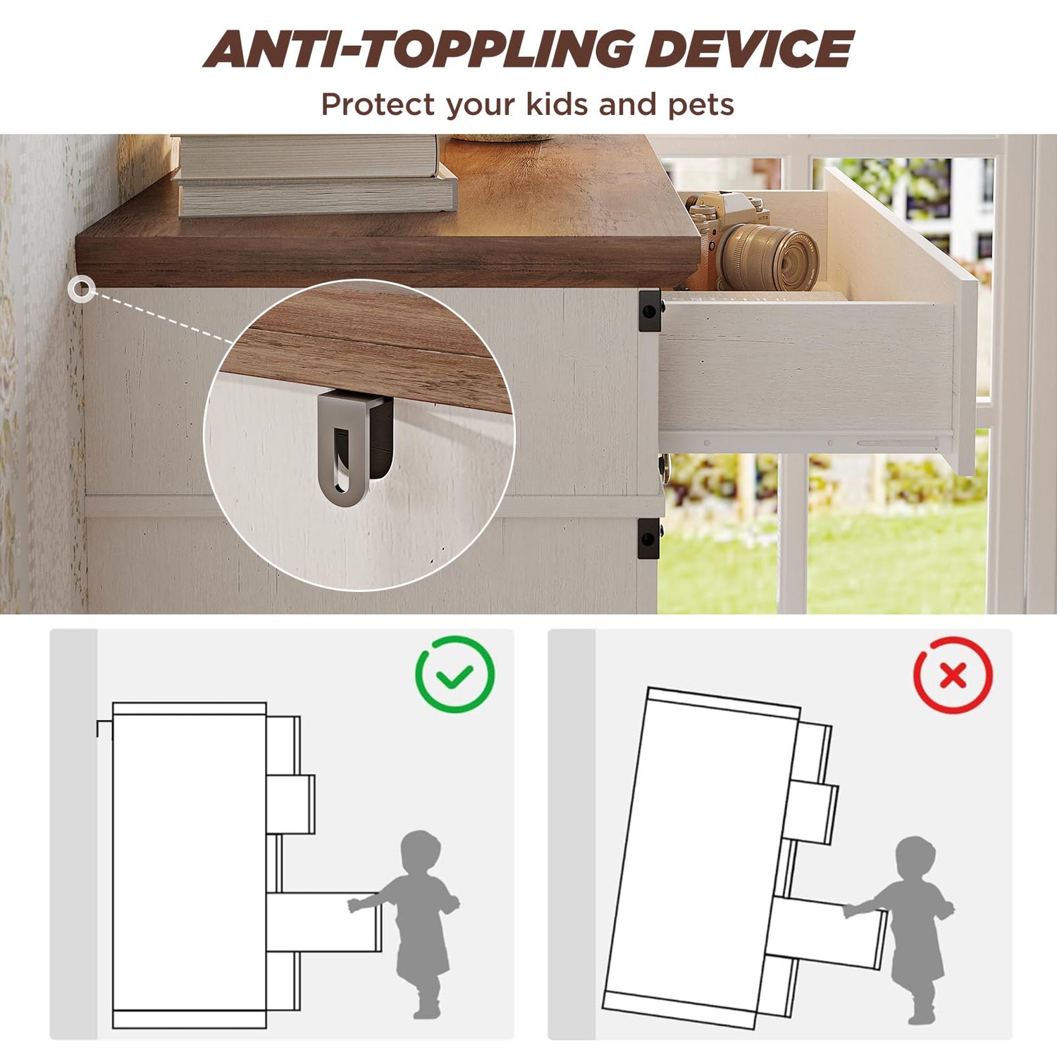- Durable Construction for Long-Lasting Use:Crafted with a solid wood frame and sturdy boards, this cabinet is built to withstand daily use. Smooth-sliding drawer tracks ensure easy access, while reinforced hardware and robust materials guarantee stability, making it a reliable storage solution for years to come.