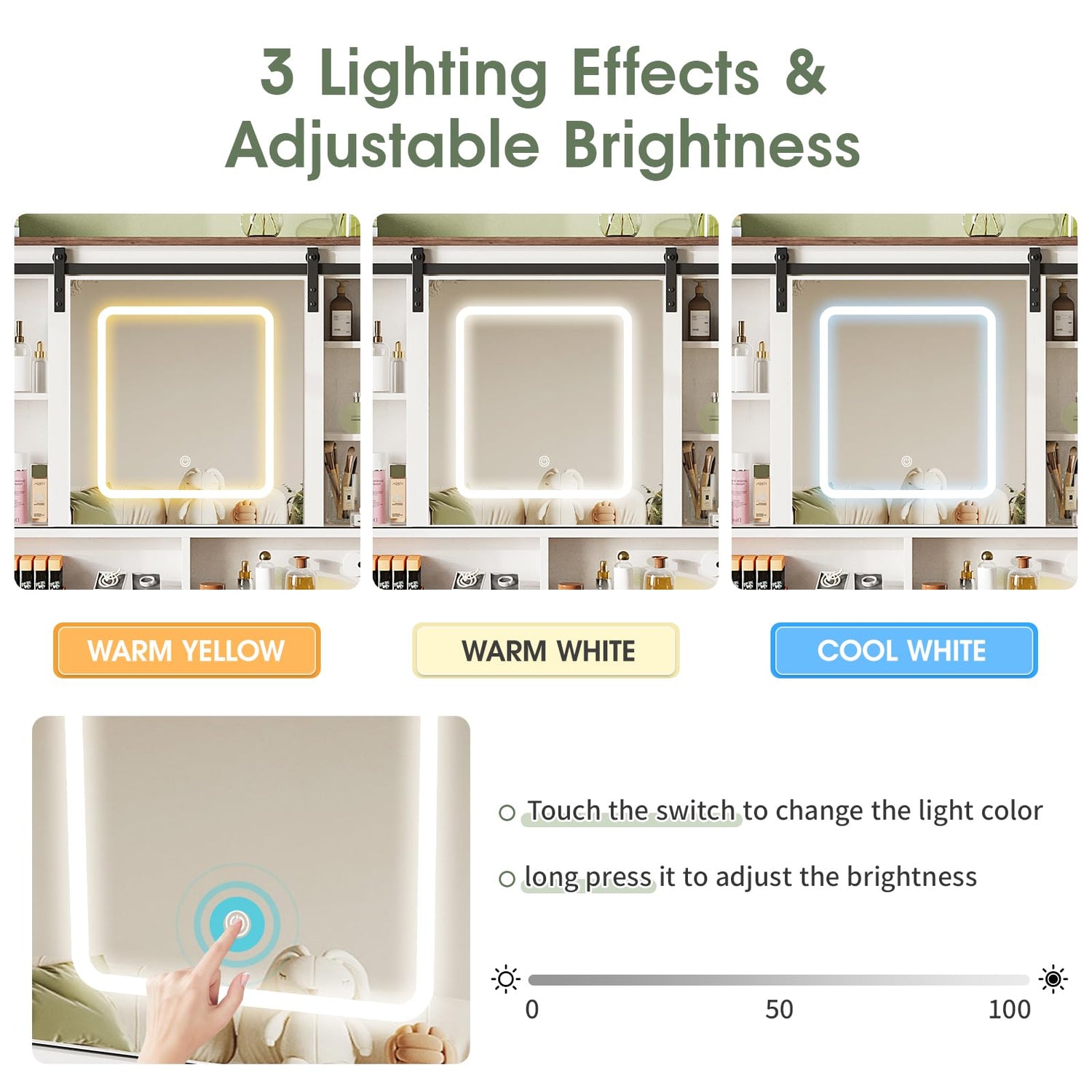 - 【Touch Control Sliding Lighted Mirror】You can slide the mirror to any side you like. Touch the button to adjust 3 color modes and long press to adjust the brightness freely, providing perfect lighting for makeup, hair or skincare and enhancing makeup happiness.
