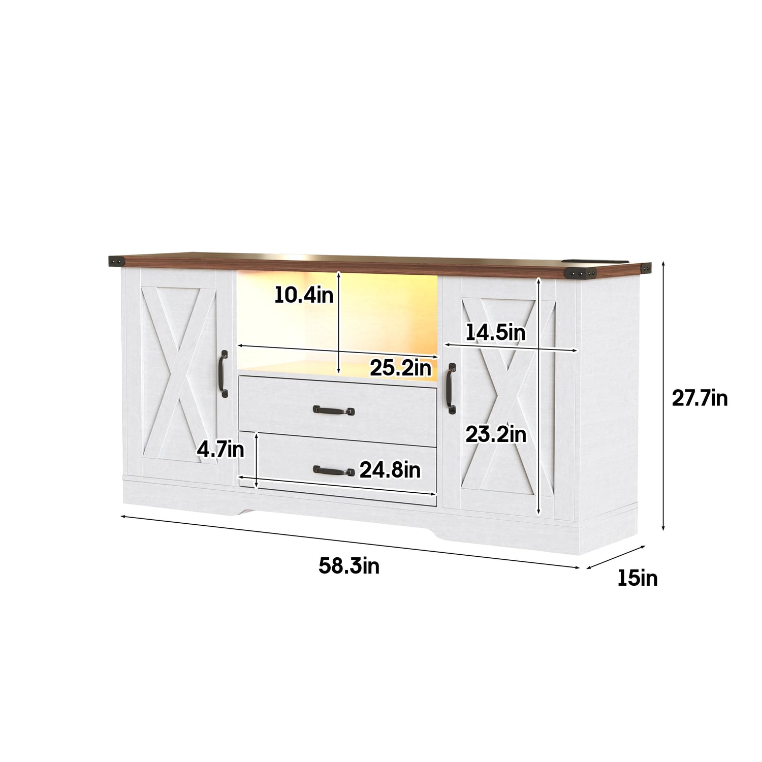 - Farmhouse Style TV Cabinet: TV stand with storage combines industrial and modern farmhouse styles, which adapts to a variety of décor styles and is the perfect addition to your living room's entertainment center.57.87 * 14.56 * 27.75 Dimensions for sizes up to 65-inch televisions