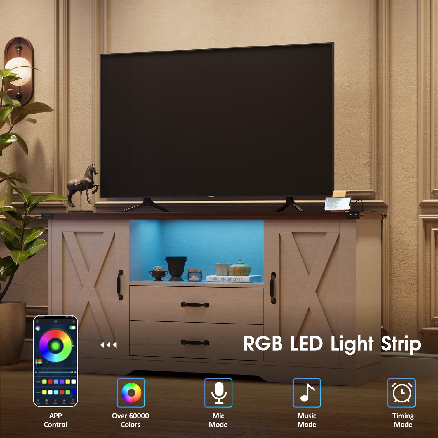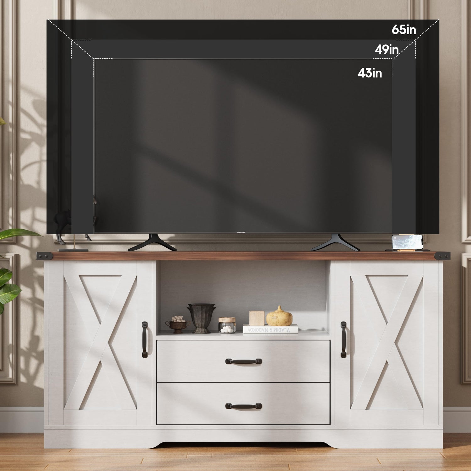 Maupvit Farmhouse TV Stand for 65 Inch TV, Television Stands with Drawers, TV Console with Storage, 58.3" TV Cabinets,Modern Entertainment Center for Living Room Bedroom,White