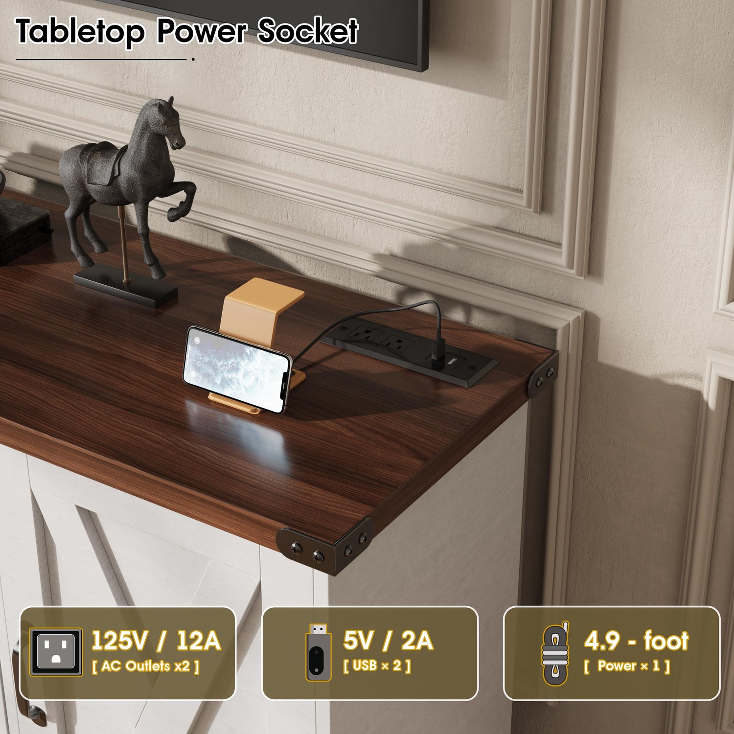 - Build-in Charging Station: TV Entertainment Center's built-in charging station is set on the tabletop, allowing you to charge your electronic devices. Cable management holes on the back help keep power cords organized , creating a tidier environment in the living room or media area