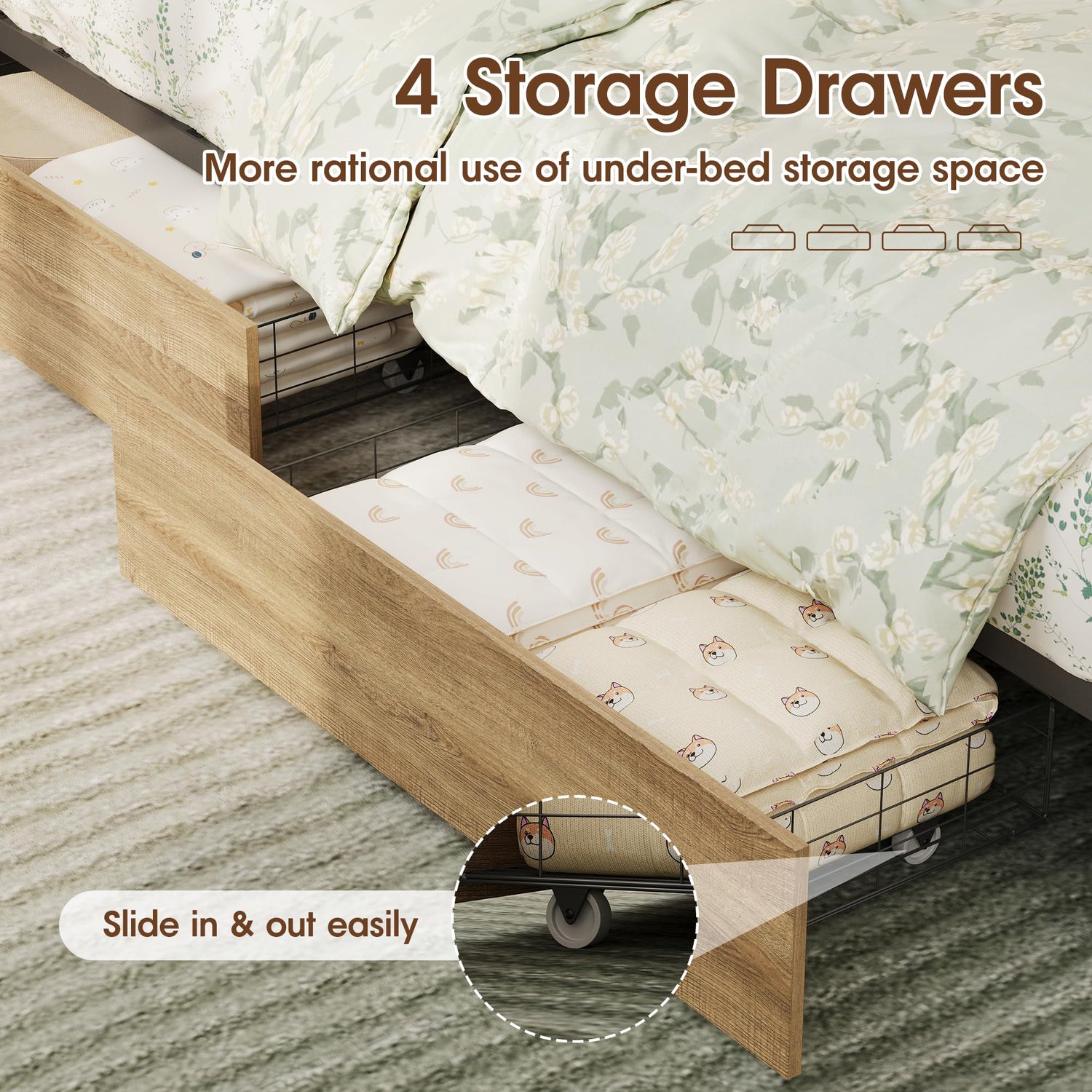 - 🛌Ample Storage Space:The 4 drawers that come with the bottom of this rattan bed frame can store extra seasonal clothes, towels or blankets, making better use of the space under the bed and keeping your bedroom neat and organized. Equipped with smooth wheels for easy pulling. The bed's drawer fixture works well to secure the drawer in its place.