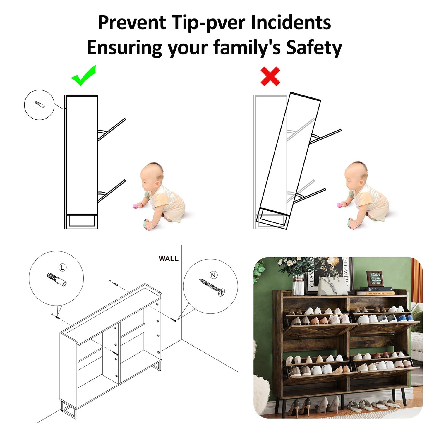- Safe and Reliable Quality: This slim shoe cabinet contains an anti-tipping device, which can be fixed on the wall to prevent tipping and protect children's safety. Made of high-quality MDF wood and metal legs, the stable structure ensures super load-bearing capacity. The black metal handle is simple and elegant, feels comfortable, and prevents scratches and injuries during use. 5 Sturdy wooden legs prevent the floor from being scratched, and can be easily cleaned with a damp cloth