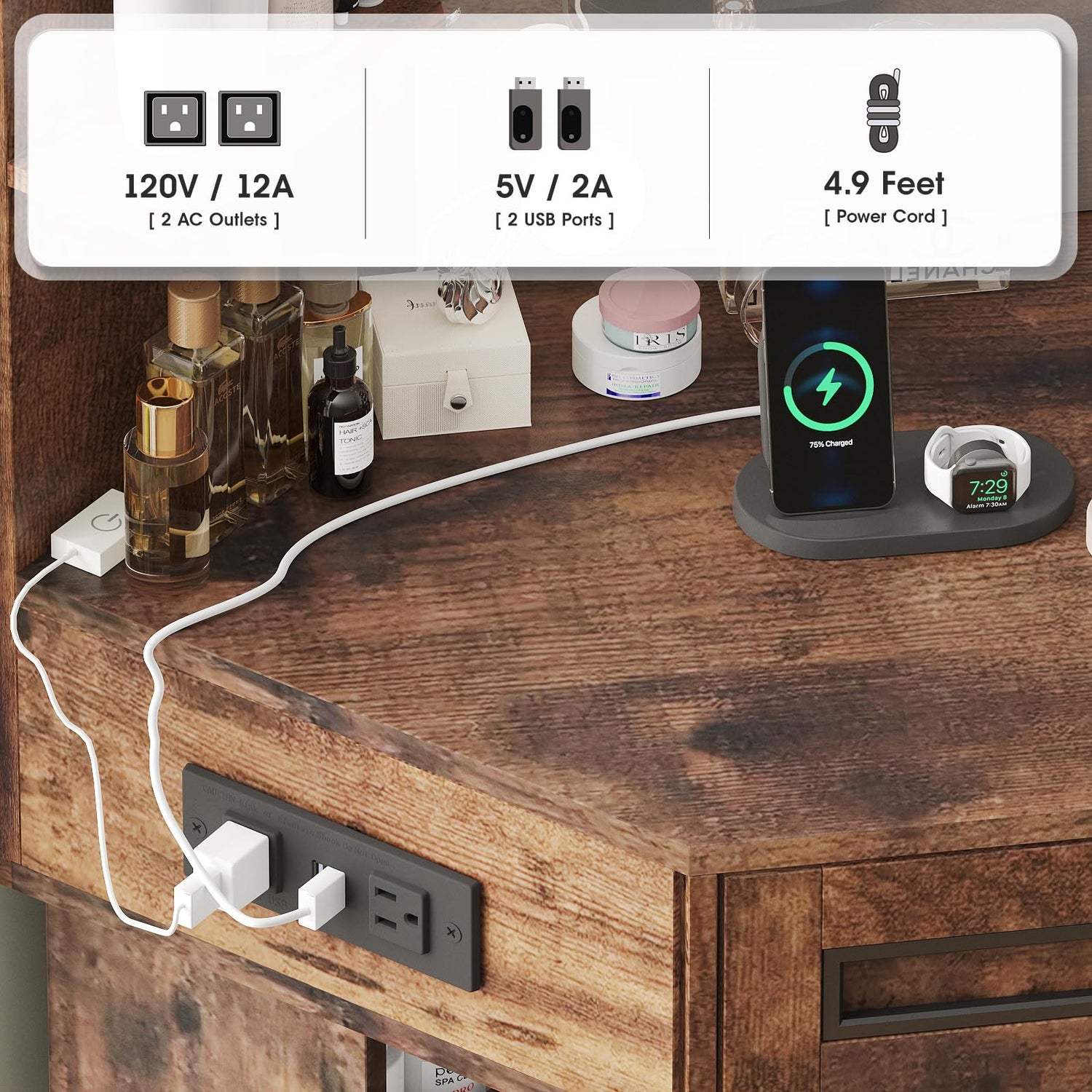 - CHARGE AT ANY TIME: The brown wood vanity is equipped with 4 built-in charging stations, including 2 USB ports and 2 outlets, making it easy to use your beauty tools as well as charge your electronic devices.