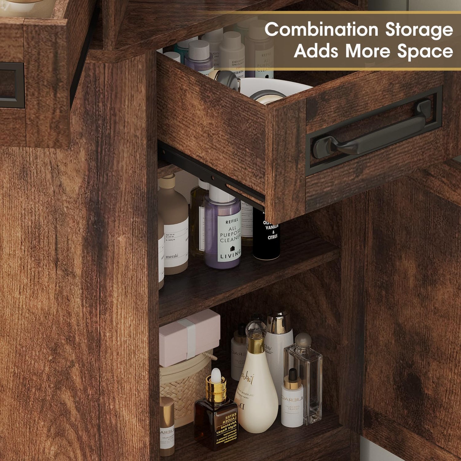 - MULTIFUNCTIONAL STORAGE: With 3 large drawers and 1 cabinet, this makeup table provides plenty of storage for all your beauty essentials. The clever combination of drawers and cabinets enhance the overall storage capacity of your makeup vanity.