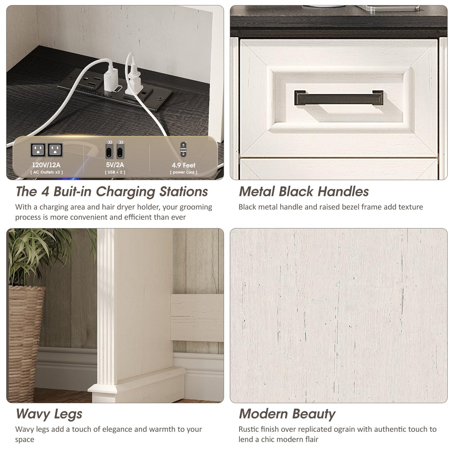 - Classic Country Style Design: The makeup desk crafted from durable materials with a soft rustic white and black coating, along with black metal handles and wavy legs to give the dressing table a unique aesthetic. This vanity table will blend in perfectly with any bedroom or dressing room, adding a touch of elegance and warmth to your space, and is perfect for Christmas gifts and birthday presents for loved ones