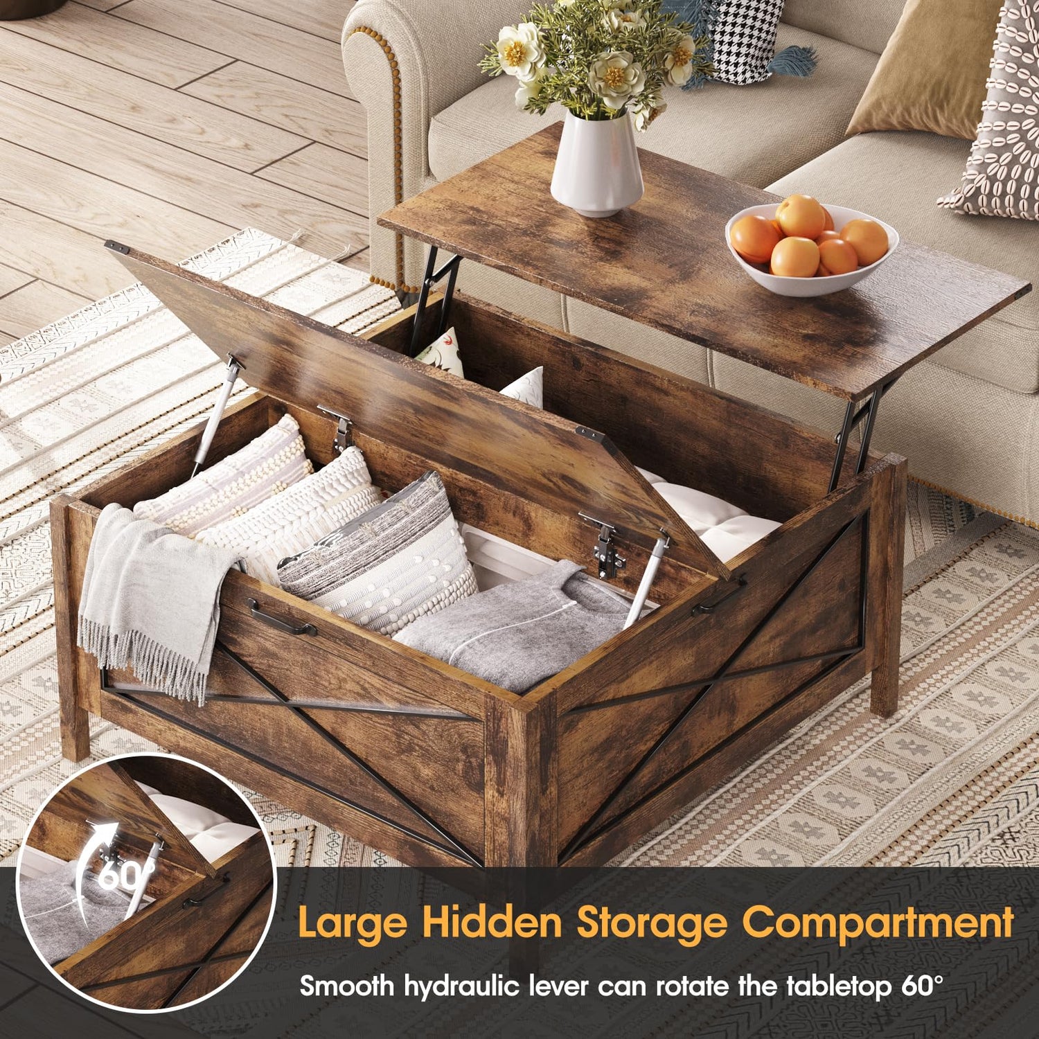 Mauqvit Lift Top Coffee Table,Square Center Table with Hidden Storage Compartment, Farmhouse Wood Coffee Table for Living Room,Bedroom, Home Office