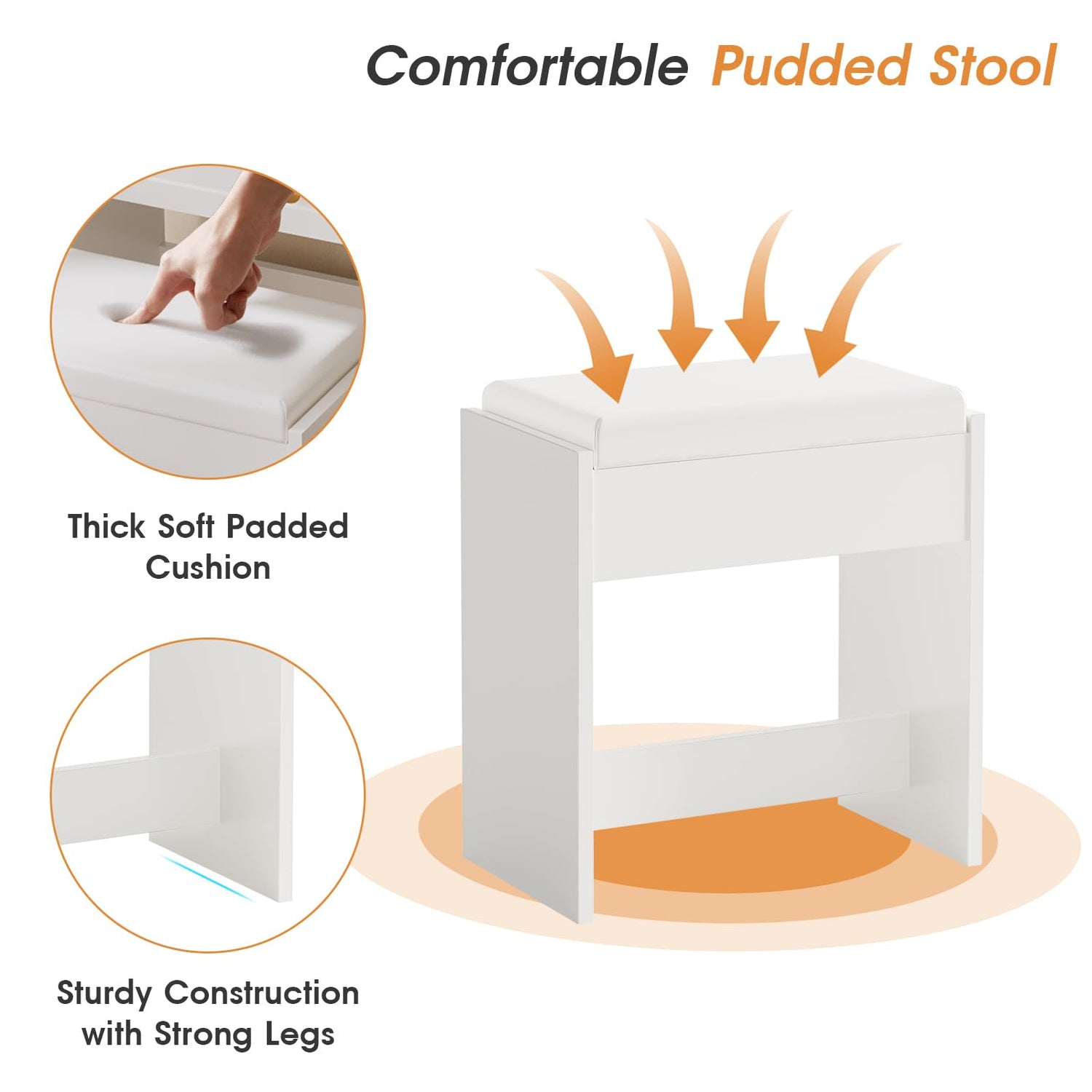 - 【Sturdy Construction & Stylish】 Made of high quality engineered wood provides the vanity table with stronger weight capacity and sturdier construction. Enhance your bedroom with this sleek, modern vanity, blending clean lines and elegance for both charm and functionality. This vanity desk is also perfect for a wife, daughter, friend, or granddaughter on birthdays, holidays, Valentine's Day, Mother's Day, and Christmas.