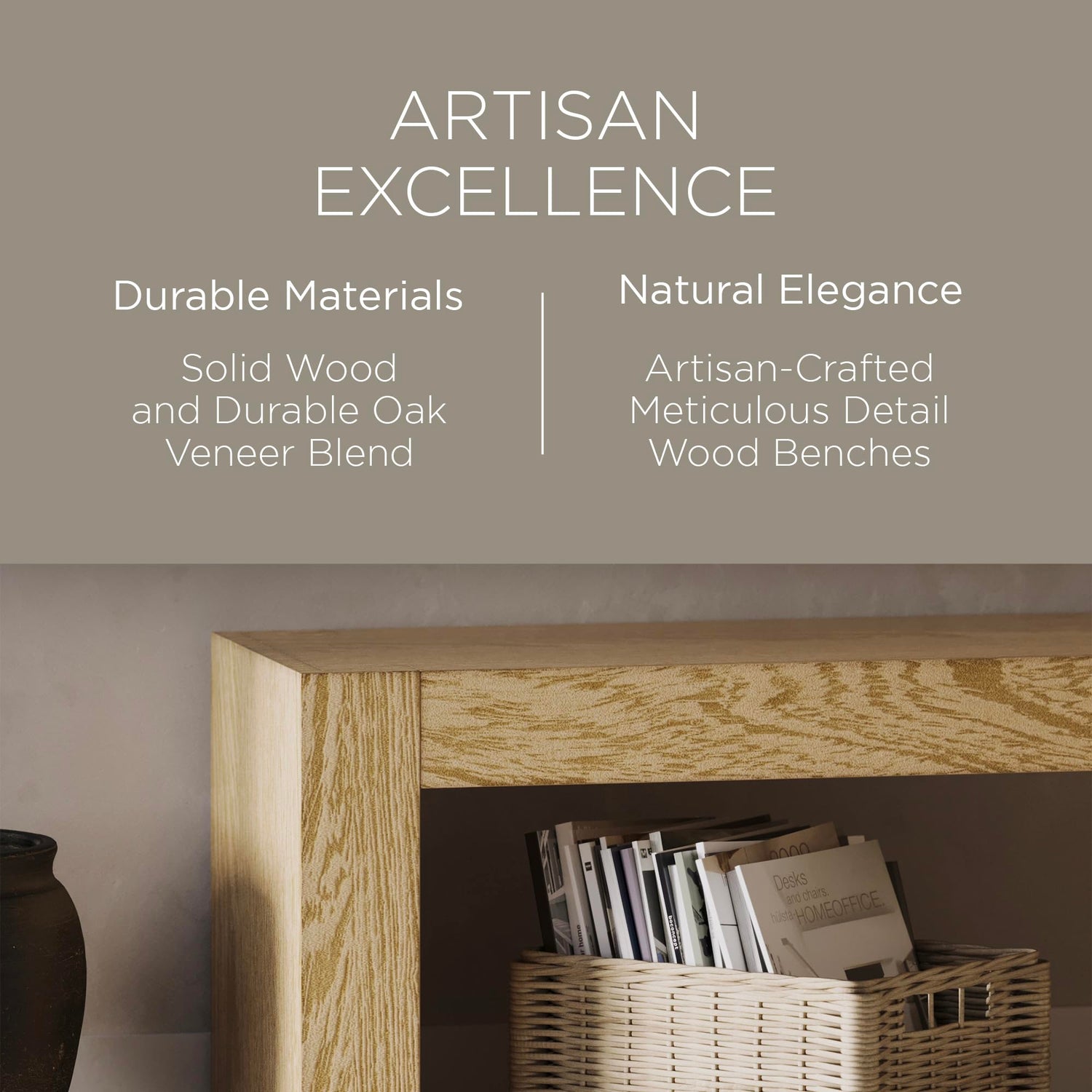 - NEUTRAL HUES: Solid wood furniture with a neutral finish is our specialty, and this well-made Zeno Wood Front Entry Bench delivers this real-wood hue impeccably well. We’ve chosen a natural shade that allows the solid wood grain to shine through yet showcases this vintage hue to highlight the bench seat in your waiting room or breakfast nook.