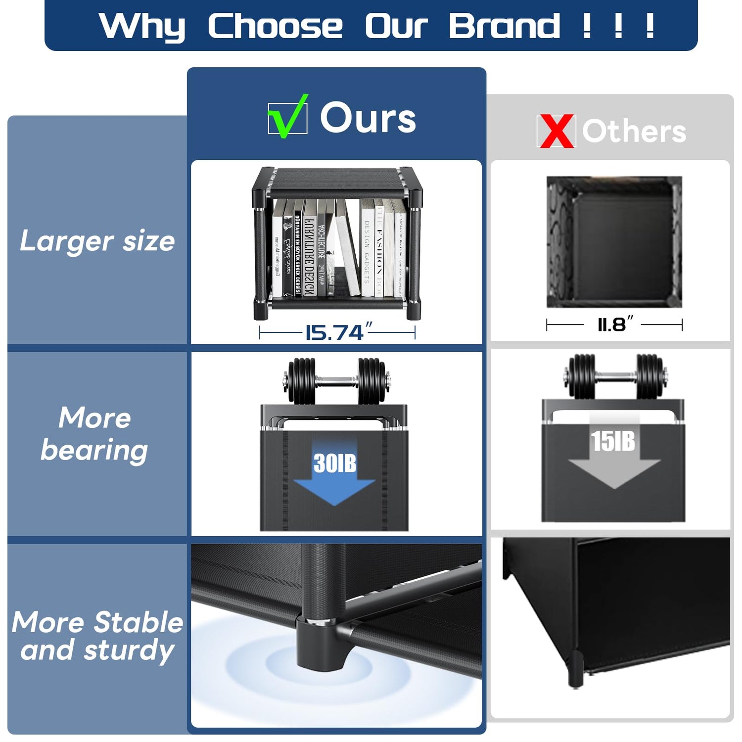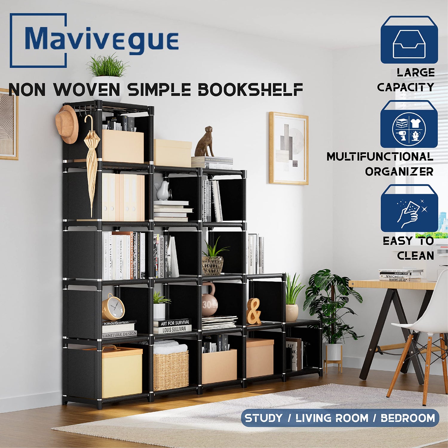 The Mavivegue bookshelf boasts a large storage capacity, with each cube measuring 15.74" x 11.8" x 11.8" (40 x 30 x 30cm). This size advantage allows you to accommodate more items, helping to improve the tidiness and comfort of your home in ways smaller shelves cannot.