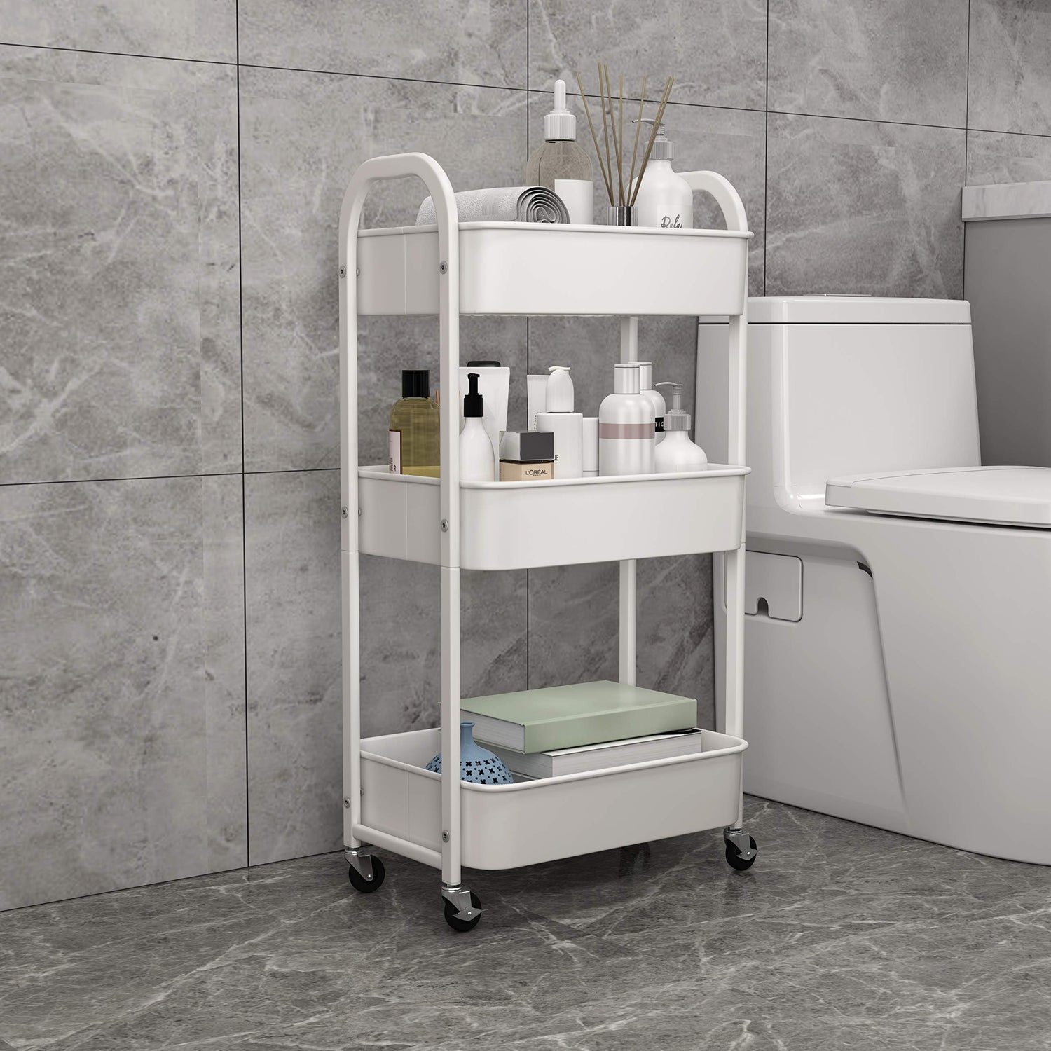 MAX Houser 3-Tier Rolling Utility Cart with Caster Wheels,Easy Assembly, for Kitchen, Bathroom (White)