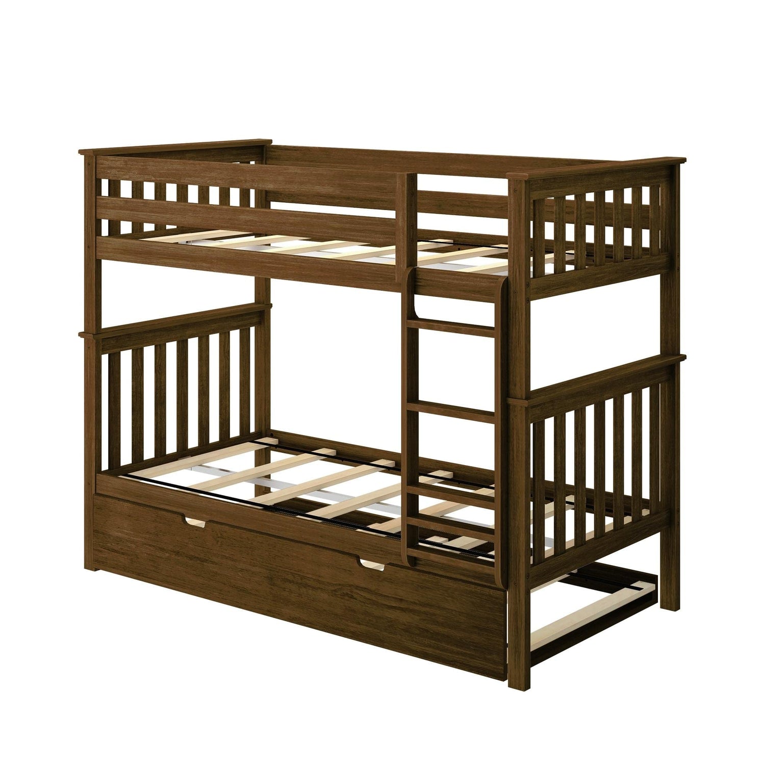 Max & Lily Bunk Bed, Twin-Over-Twin Bed Frame for Kids with Trundle, Walnut