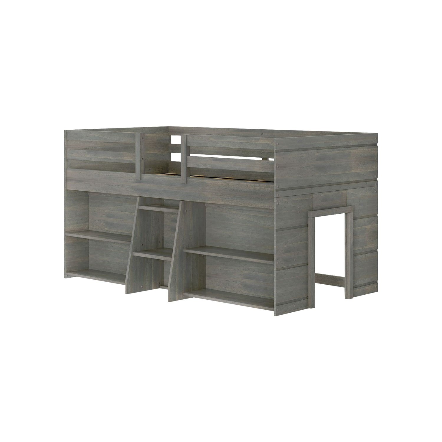 Max & Lily Driftwood Modern Farmhouse Low Loft Bed with 2 Bookcases for Kids