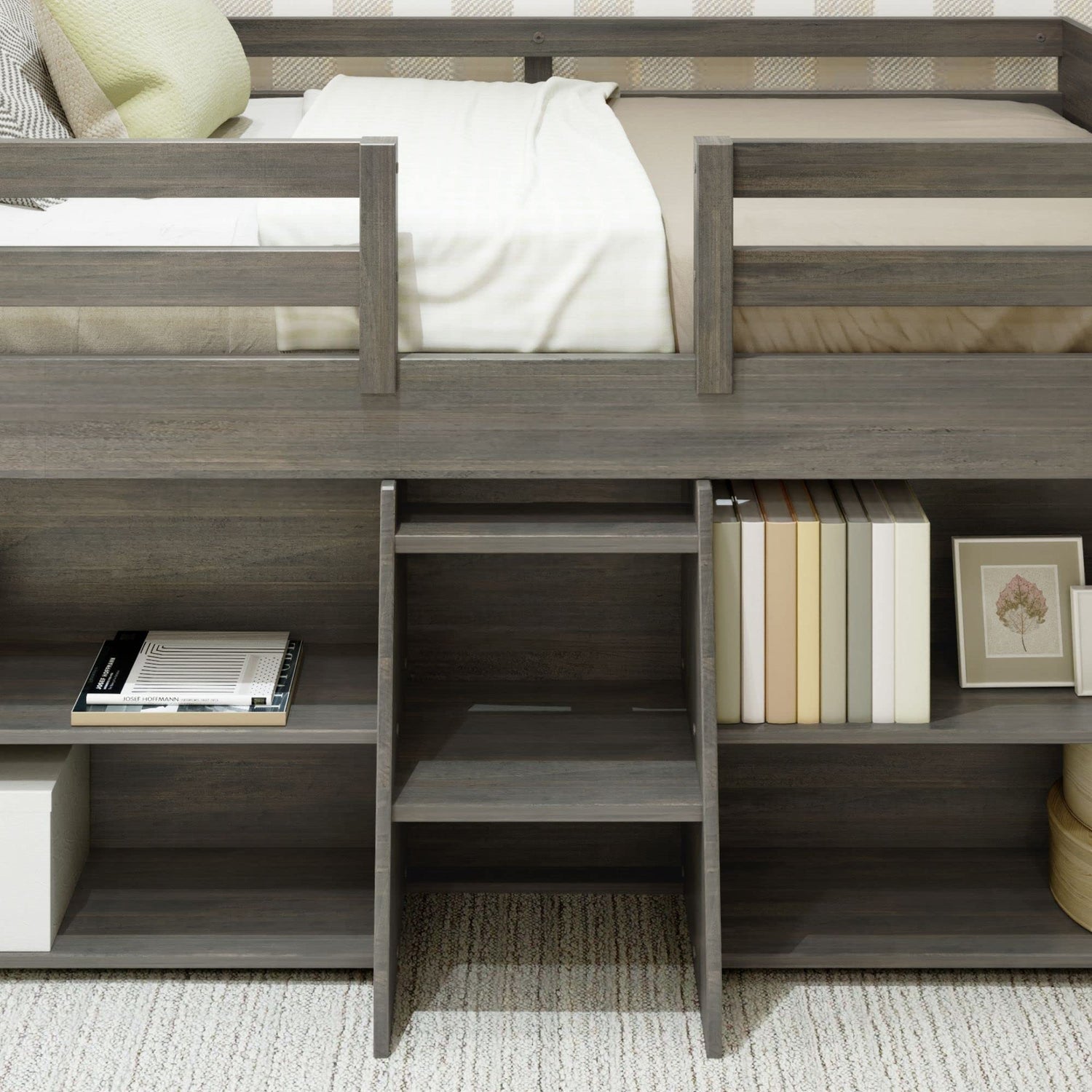 Transform your child's space with a bed that seamlessly combines sleep, play, and storage, creating an inviting atmosphere they will love. Choose the Max & Lily Driftwood Modern Farmhouse Low Loft Bed with 2 Bookcases and elevate your child's room today.