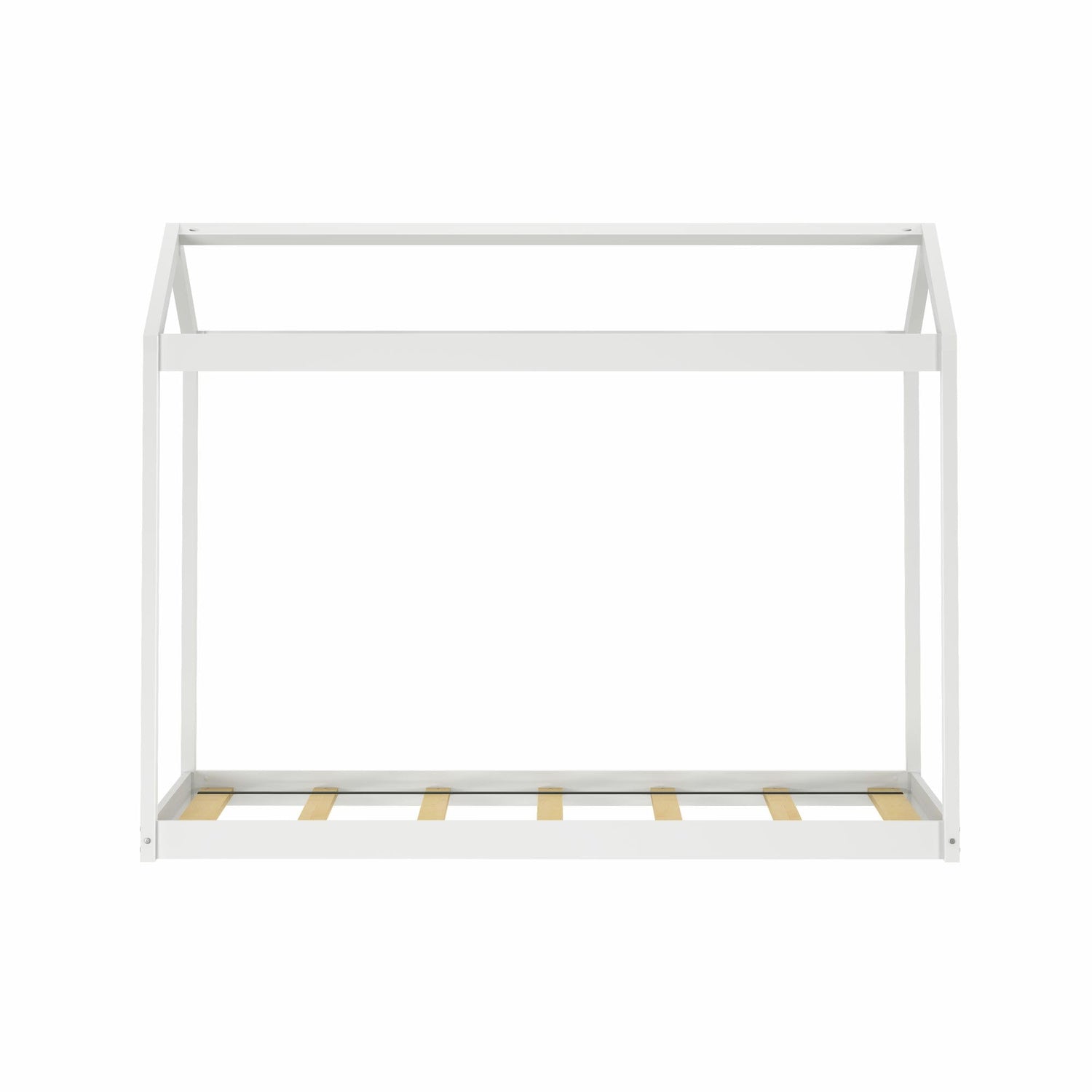 Max & Lily Twin Floor House Bed, Modern Solid Wood Low Bed Frame for Kids, Montessori Floor Bed for Bedroom, Playroom, Wooden Slats, White