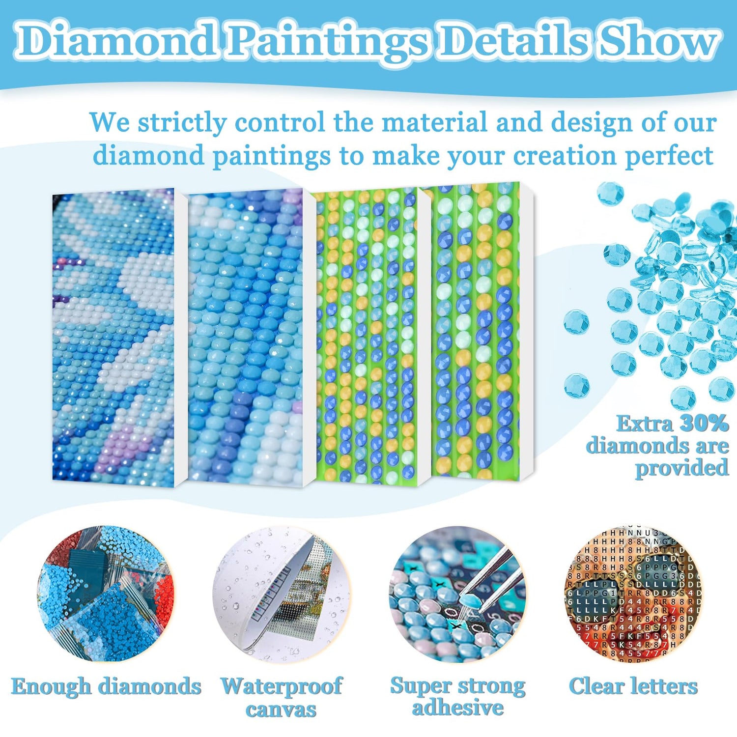 - After-Sales Guarantee: Every painting with diamond includes 30% extra drills and quality inspection. If you have any questions about diamond dots, contact us anytime. We promise to resolve your concerns within 24 hours