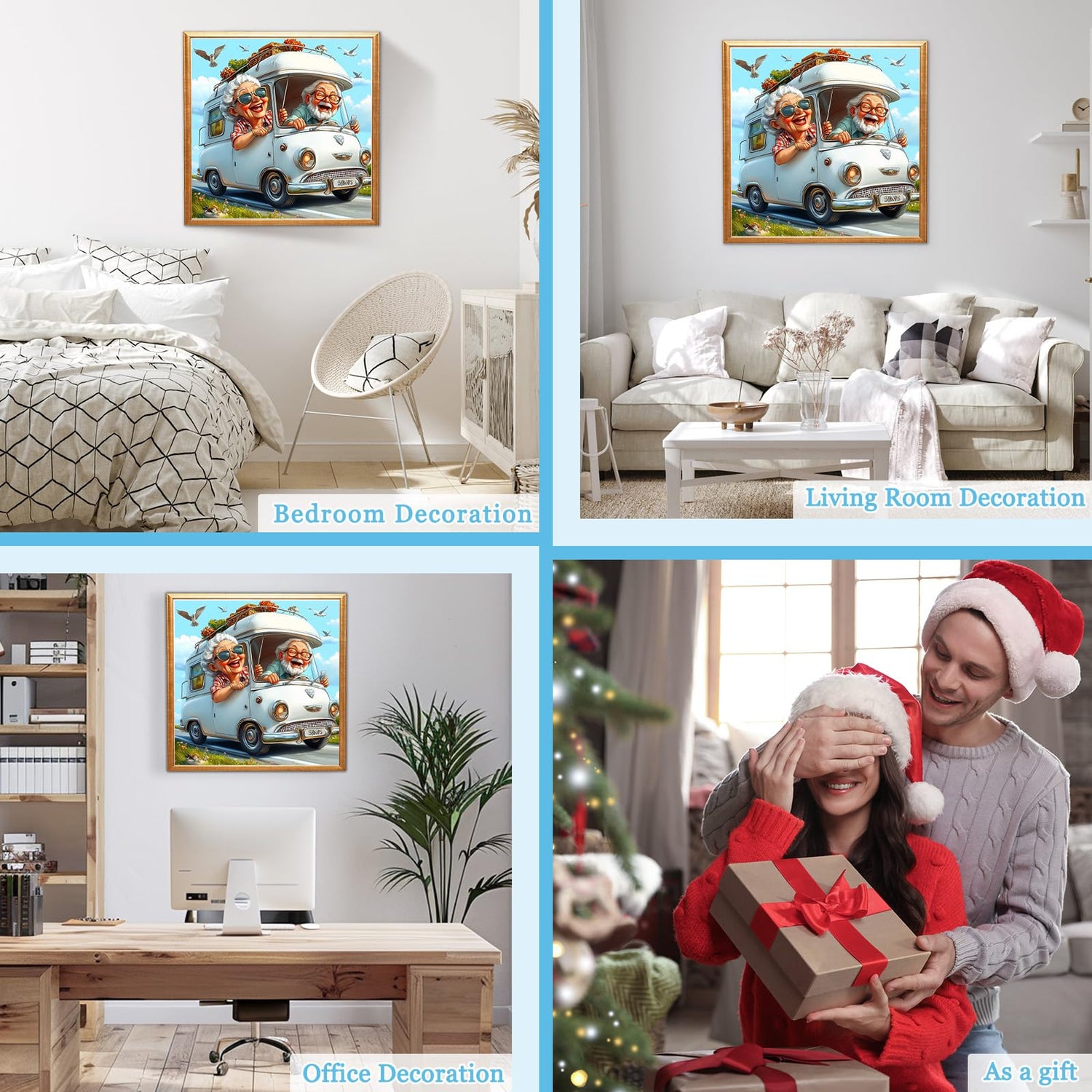 MAXBYE Cartoon Happy Couple Diamonds Painting Kit for Adults, Touring Car 5D Diamond Art Kit, Cartoon Gem Art Kit for Home Wall Decor Present, 12x12in