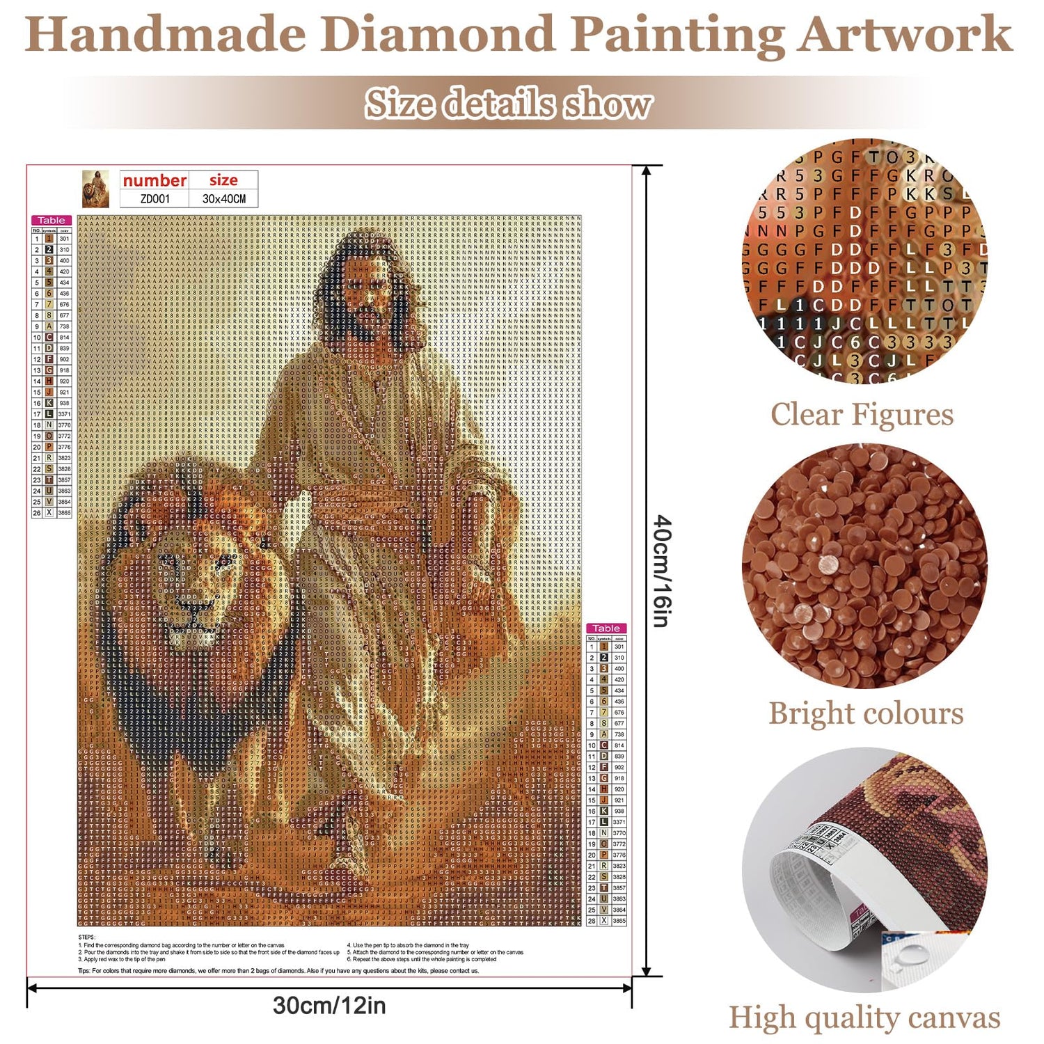 MAXBYE Jesus Diamond Art Kits for Adults, Lion Diamond Painting Full Drill Round Gem Art, 5D DIY Religion Christ Diamonds Painting Suitable Home Wall Decor Gift 12x16inch