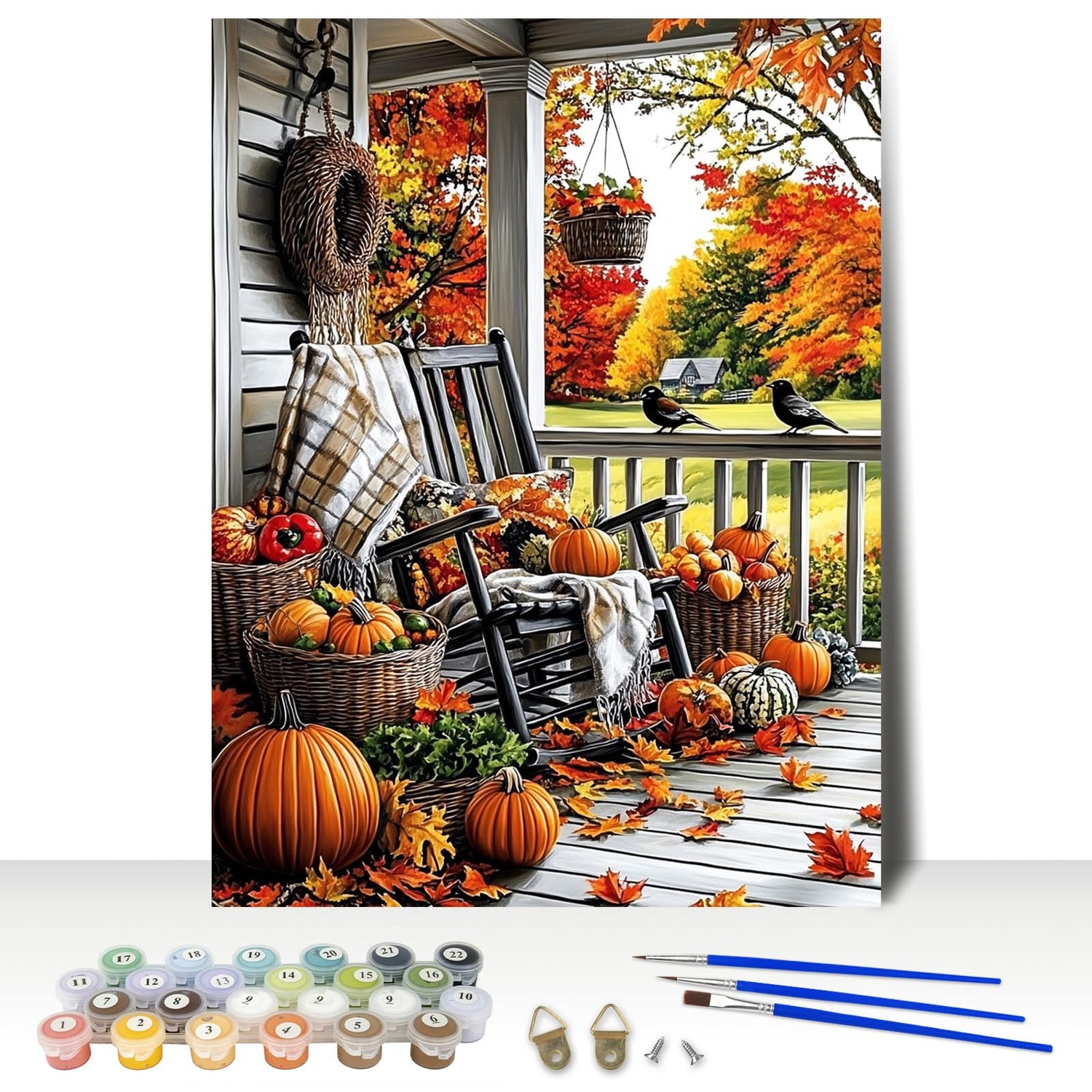 MAXBYE Paint by Numbers, Autumn Porch Adults' Paint by Number Kits, DIY Acrylic Paint Kit for Adults Beginners Unframed, Pumpkins Easy Oil Paint by Numbers Canva for Home Wall Decor 12x16inch
