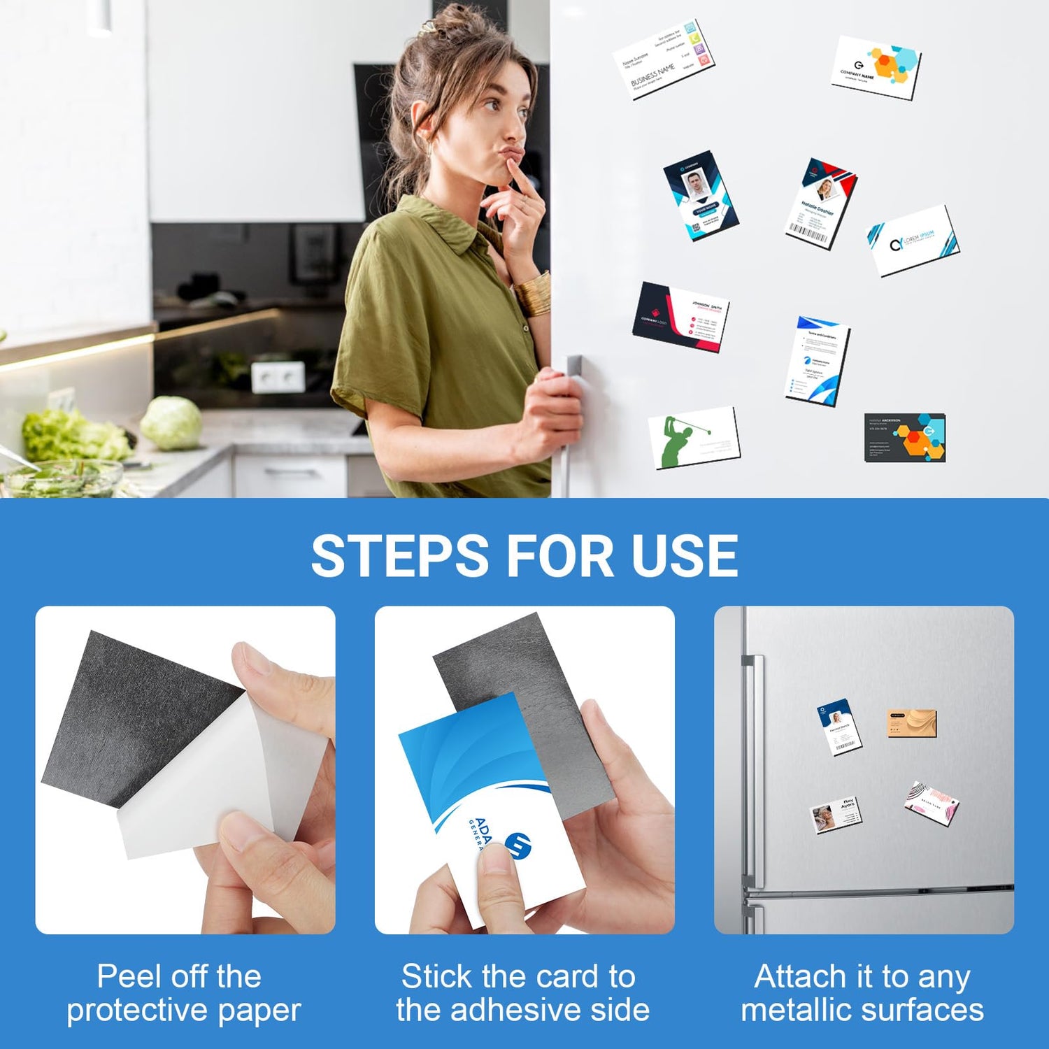 - Versatile Usage: These business card magnets with adhesive backing offer endless possibilities. Conveniently cut them into different sizes to perfectly accommodate your cards. Use them not only for business cards but also for invitation cards, flash cards, and classroom materials. The flexibility and durability of these magnets make them ideal for various applications.