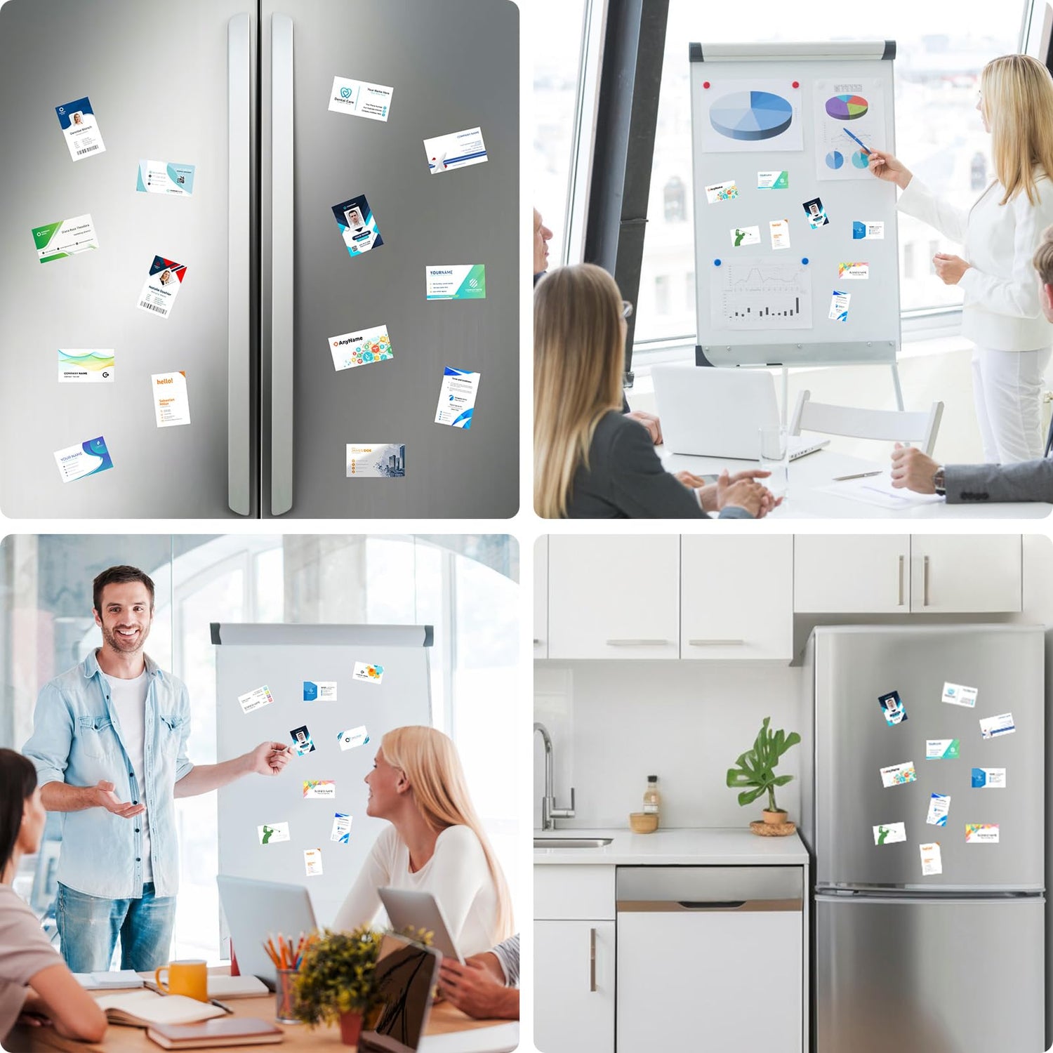 - Unique Decoration: Beyond business, our flexible and durable magnet sheets with adhesive can be used for decoration. Showcase your photos, pictures, and drawings on metallic surfaces like home appliances or office boards. Enhance the visual appeal of your space and make your images appreciated by guests. Elevate your professional image with our custom magnet business cards!