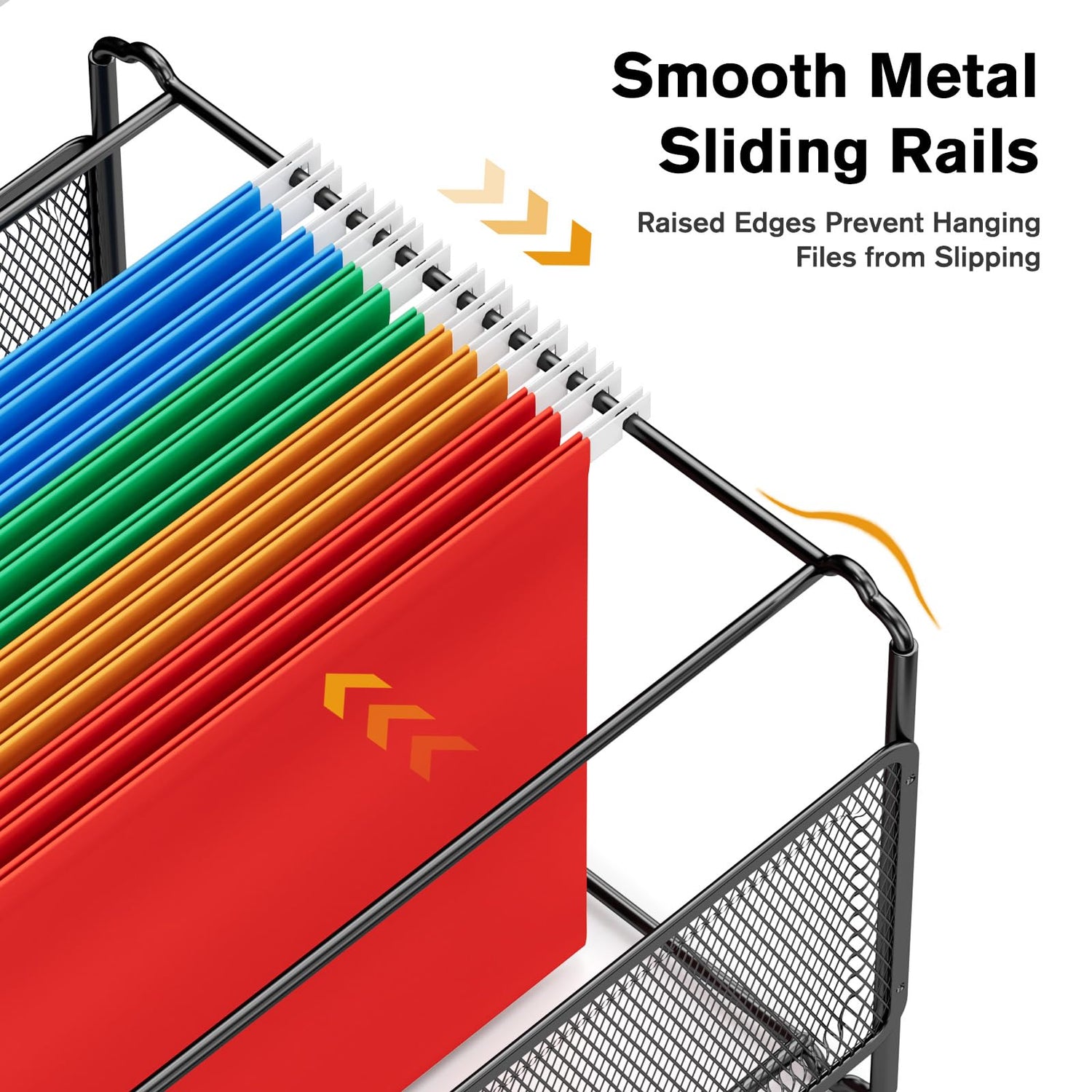 - Modern & Functional Design: This stylish file storage organizer will add a modern and delicate sense to your office and home. Dress this file organizer with colorful hanging folders to match your office and home décor. Smooth sliding rails are designed to make sliding files back and forth conveniently. Raised edges prevent hangings files from slipping.