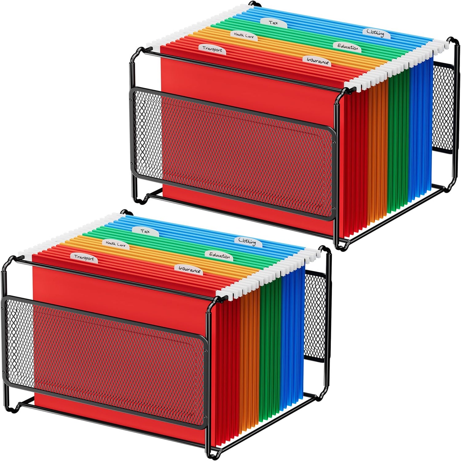 MaxGear Hanging File Organizer, Letter Size Filing Box, Metal Mesh Black Desk File Folder Storage for Office, Home, School, 2 Pack