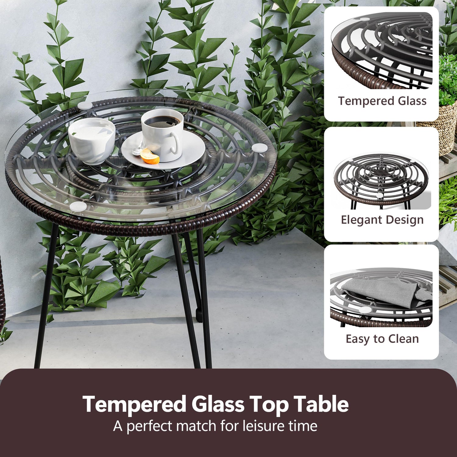 - Side Table: The round coffee table is made of tempered glass and features suction cups underneath for elegant and durable. Perfect for setting down a few cups of coffee, snacks, or books on a lazy afternoon, allowing you to enjoy the beautiful sunshine