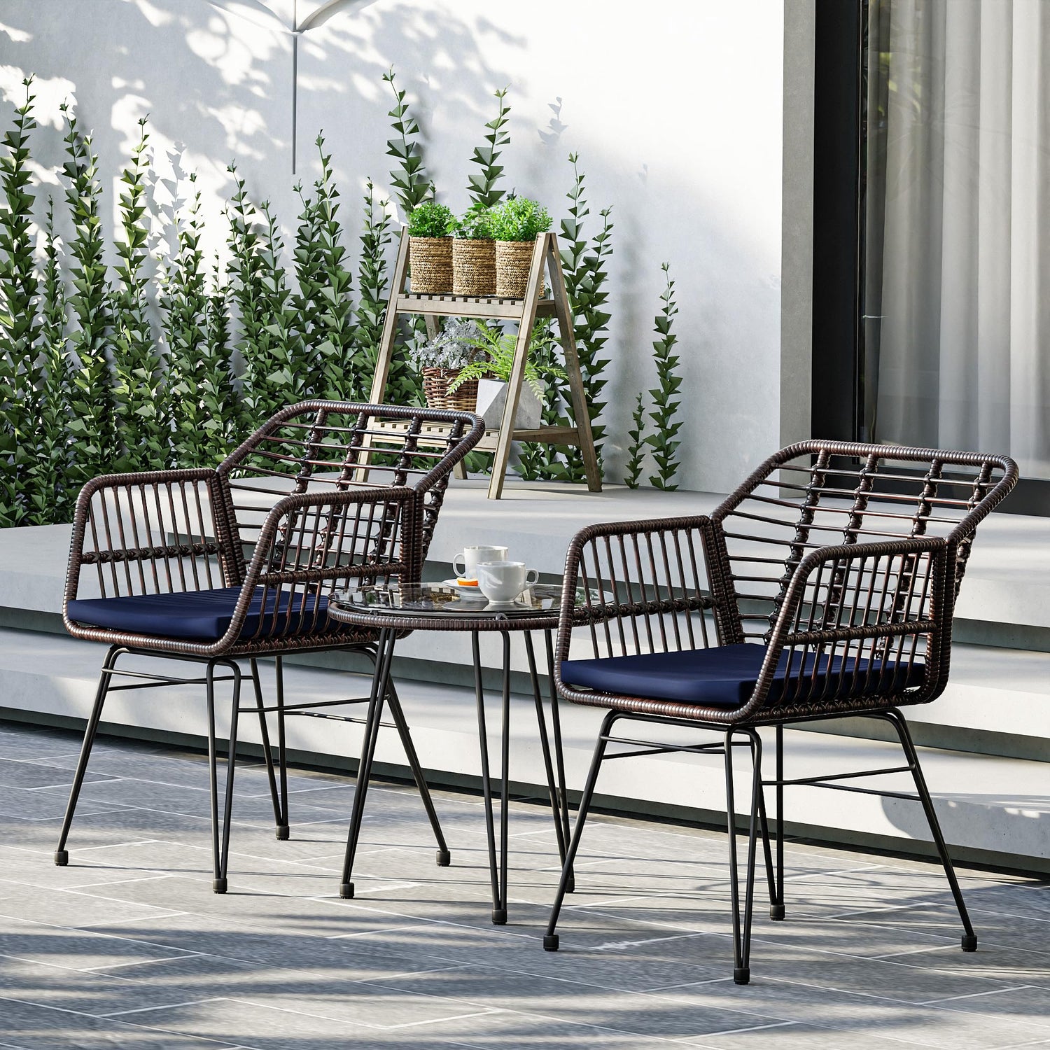 MaxMulti 3 Piece Wicker Patio Bistro Set, Outdoor Conversation Sets with 2 Rattan Patio Chairs and 1 Side Table, Rattan Patio Furniture for Balcony, Deck, Apartment Use (Blue)