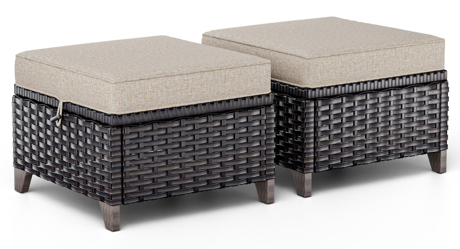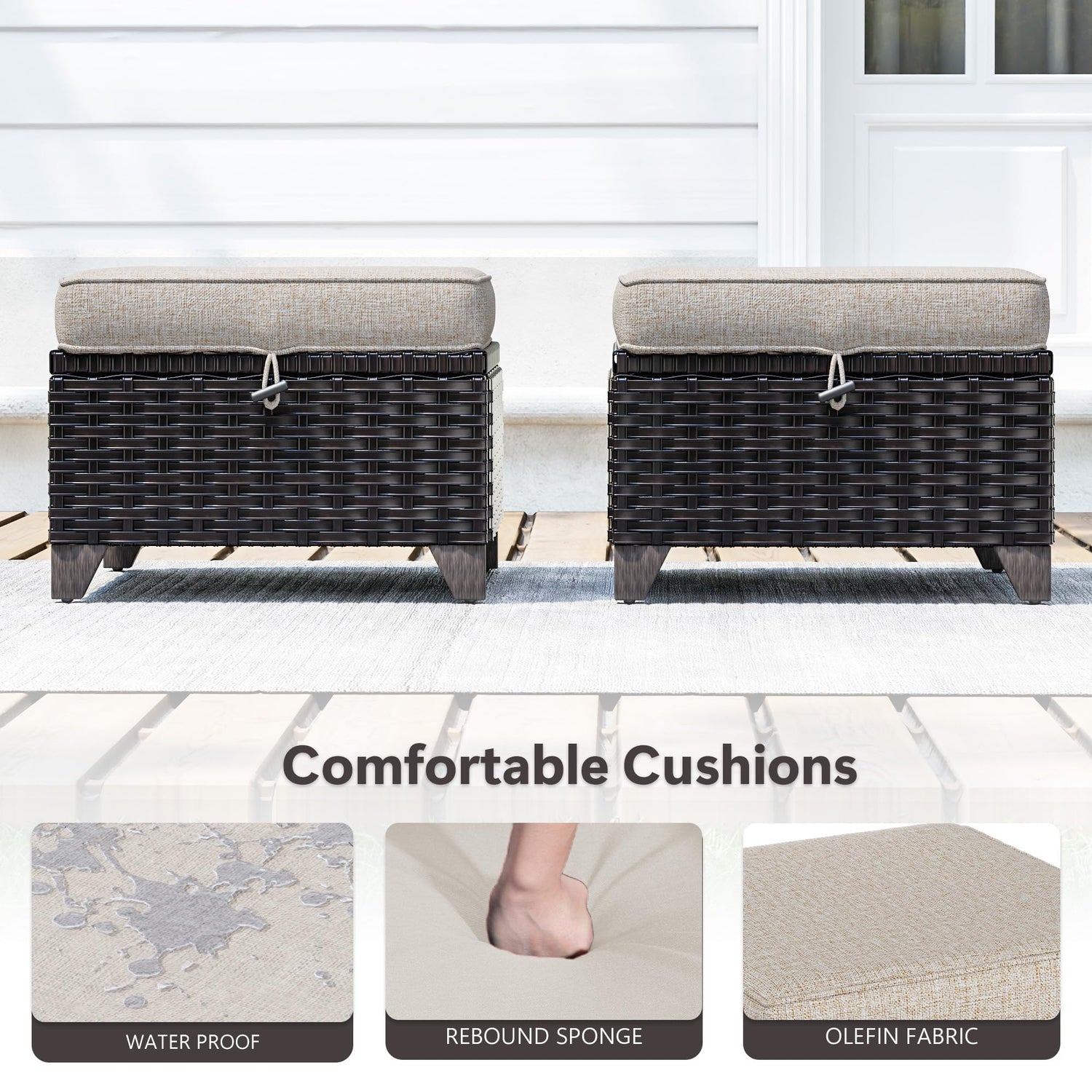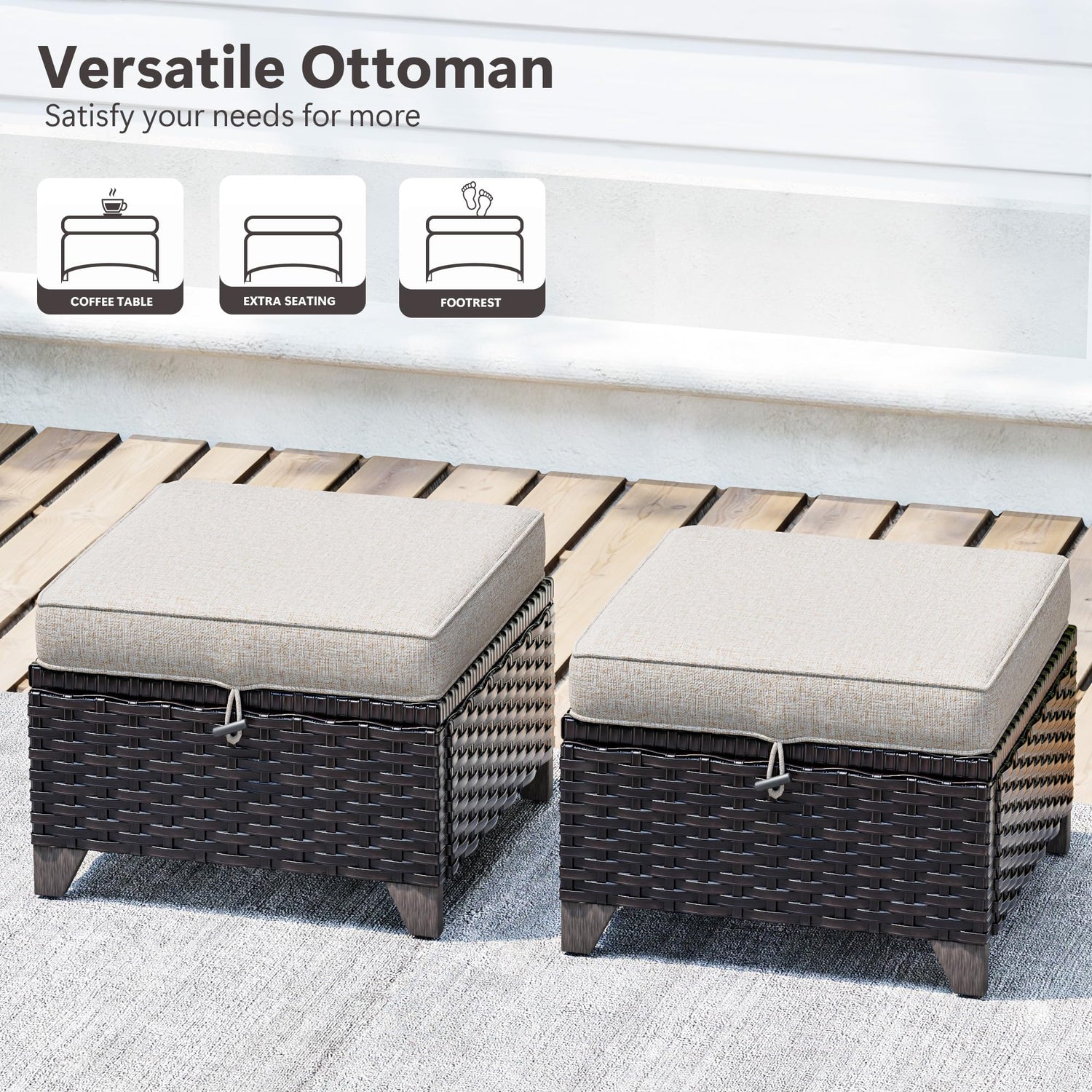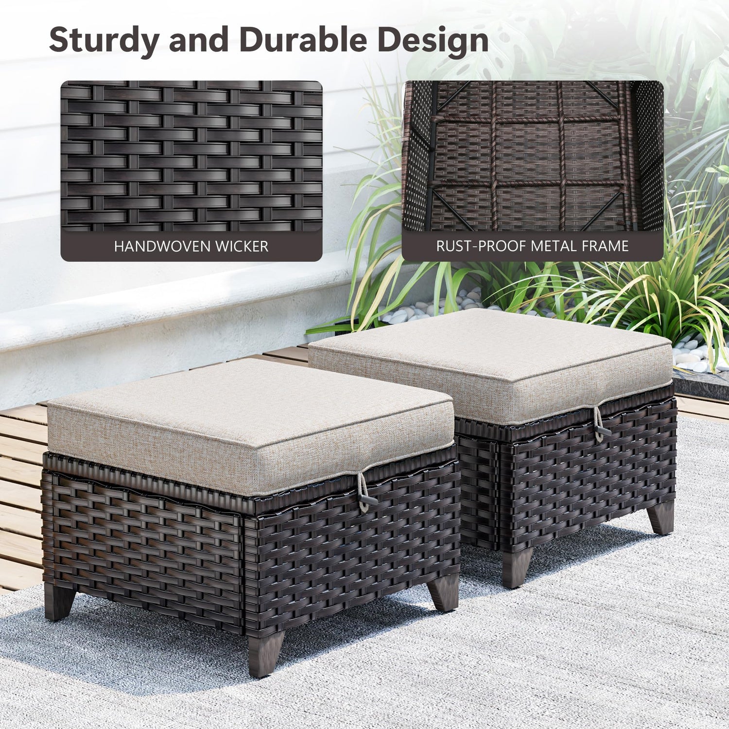 MaxMulti Patio Ottomans Set of 2, Outdoor Wicker Footrest with Thickened Cushions, Outdoor Rattan Ottoman for Porch, Backyard and Deck (Beige)