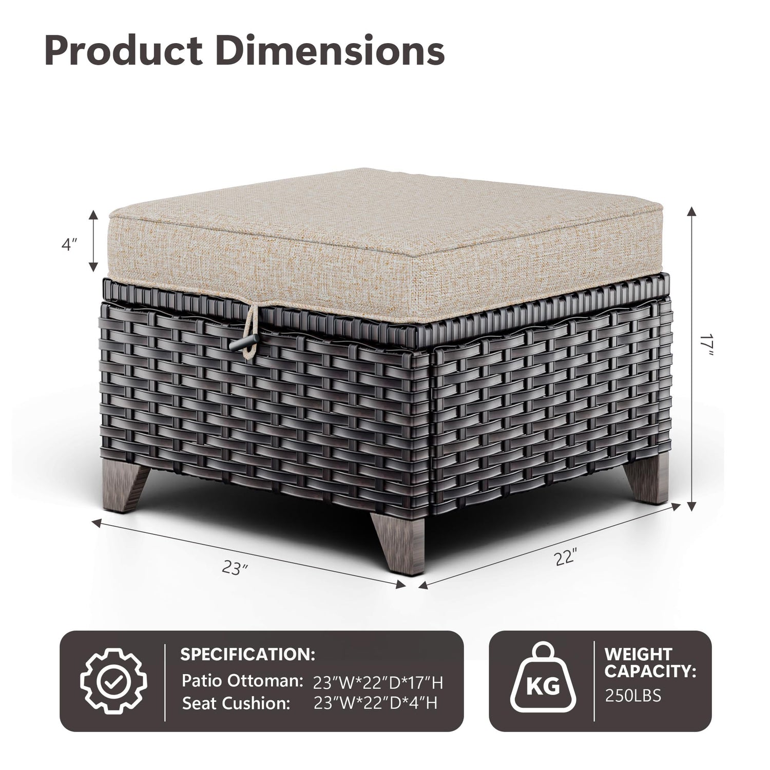 - Sturdy Construction: The patio ottoman is specifically designed for outdoor environments with a rust-resistant powder-coated steel frame, ensuring both strength and durability. This design guarantees a solid and safe foundation that can withstand the test of time and frequent use