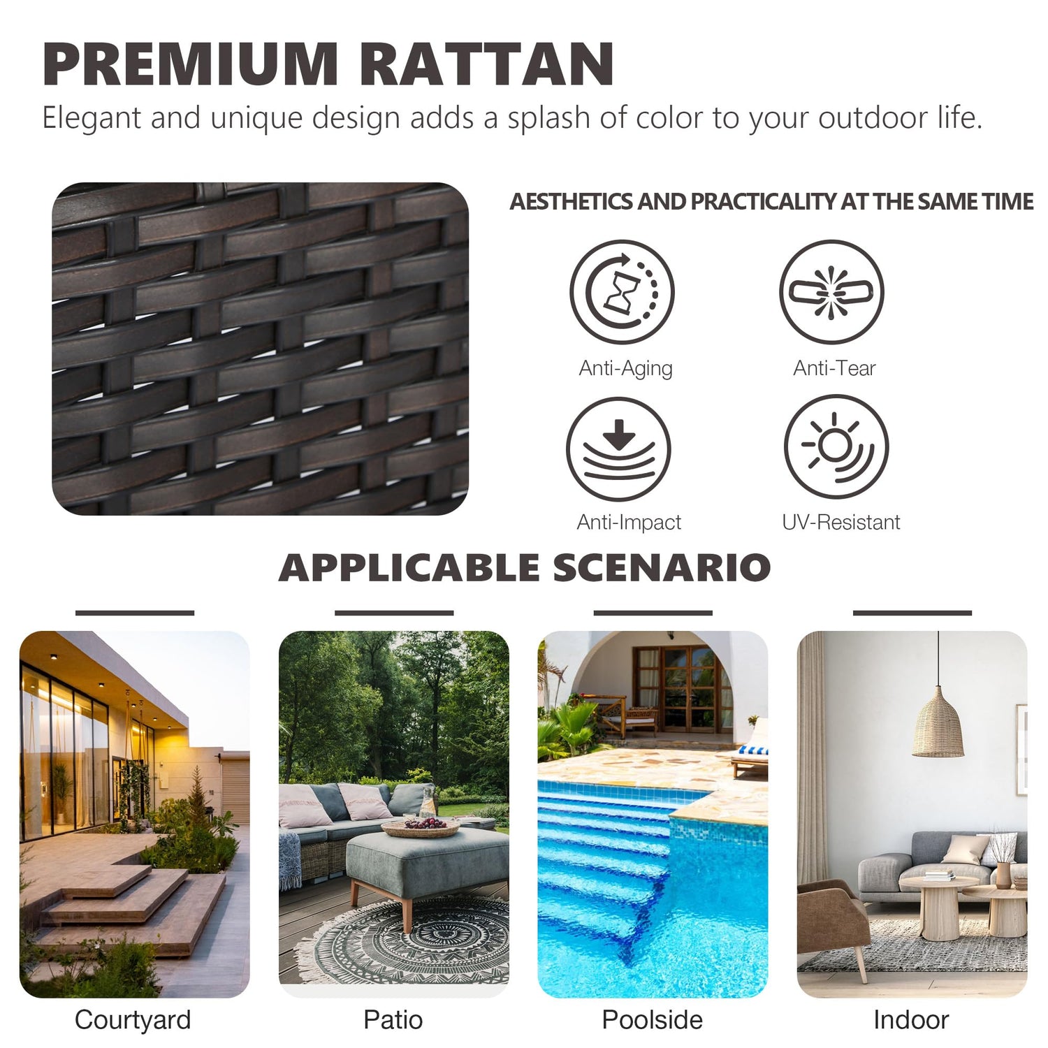 - Premium Wicker: The outdoor ottoman is meticulously handcrafted by skilled artisans, with tight, precise weaving. It is made from all-weather polyethylene wicker, which is stronger, more durable, and easier to maintain than traditional wicker. The beautiful brown-black tones of the wicker seamlessly blend with the design and landscaping of any garden or backyard, adding a touch of natural charm