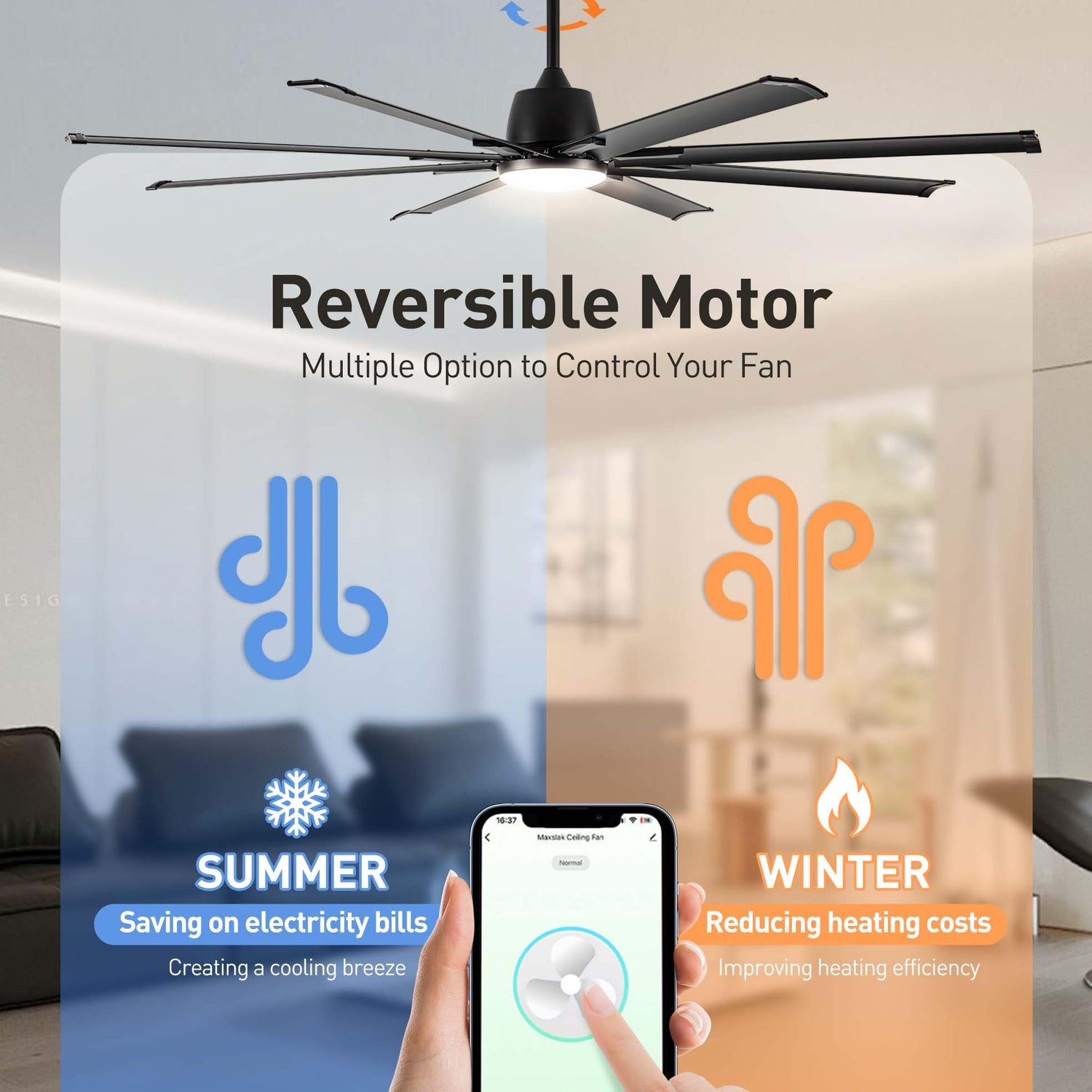 - Smart Control Fans:The Maxslak 72-inch industrial ceiling fan with light offers various control options,officially certified to work with Alexa (WWA).Easily adjust airflow(6-Speed) and lighting Brightness through Alexa Google voice commands.You can use the ‘Smart Life’ app easily add to your smart home,the included remote control also can as a Wall Switch
