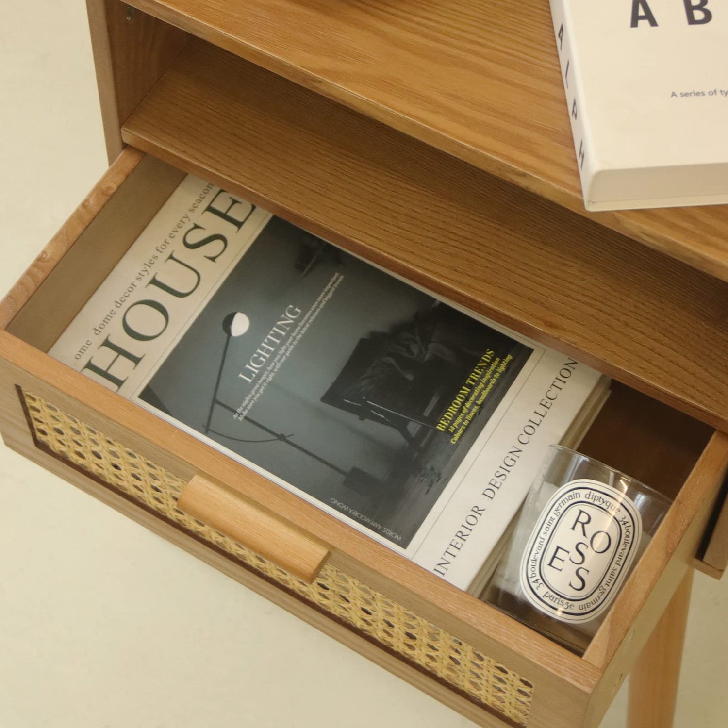 • Stylish and Practical Storage: The bedside table features a two-tier storage design, a unique extra top shelf and a spacious tabletop with a natural rattan drawer to fit your snug home and provide more space to put down books, snacks, drinks
