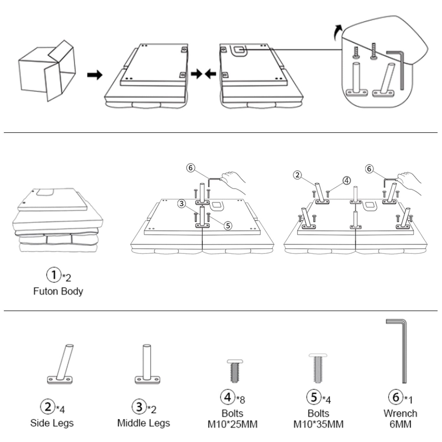 • 【Easy Assembly】 Modern convertible futon sofa bed is delivered to your home in a box that you can easily carry to any corner of your home, with easy installation steps and comes with 6 chrome-plated legs with protective cover more solid and stable.
