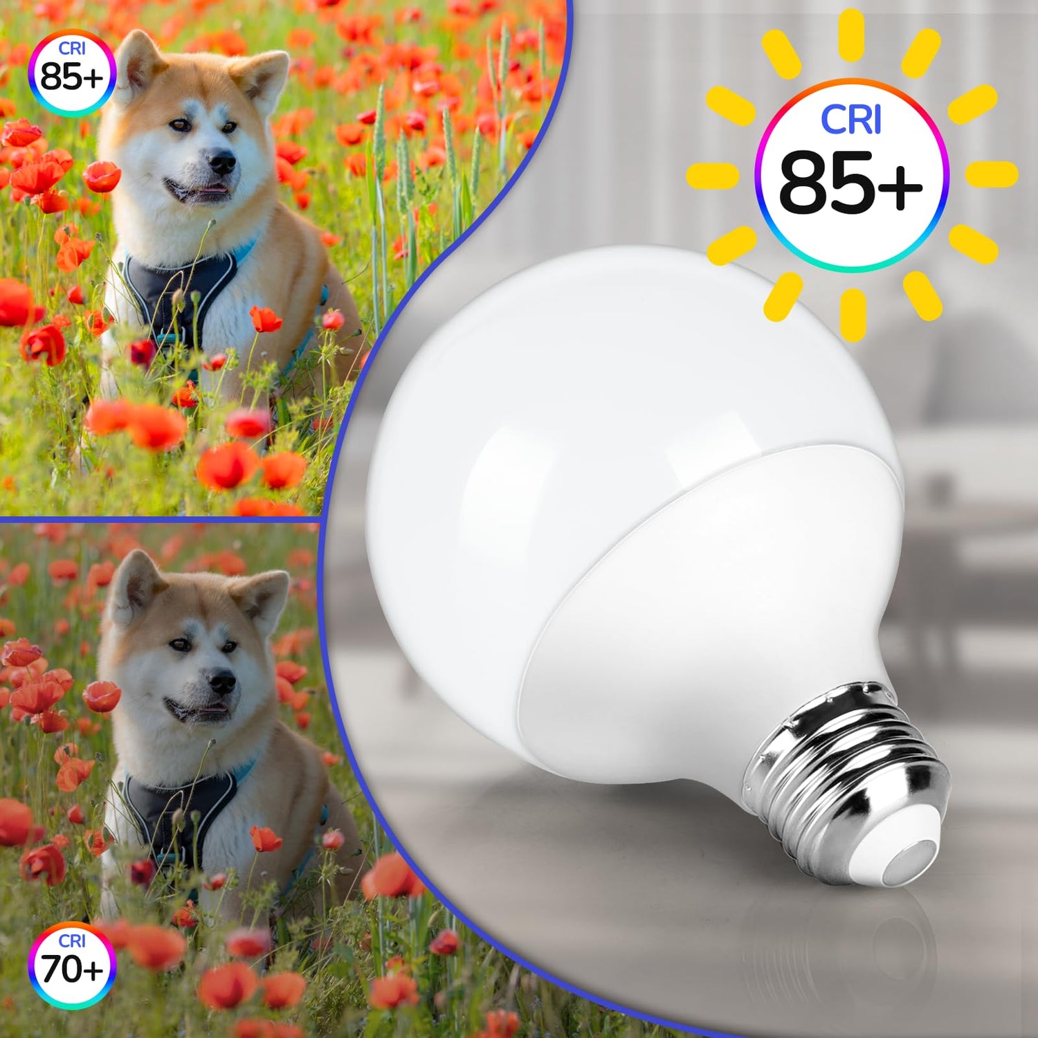 - Upgrade your space with more uniform lighting: Our vanity mirror light bulbs are designed with Higher transmittance lampshades and higher-quality LED chips. The high CRI 85+ of bathroom light bulbs makes the lighting more realistic and vibrant, making various beauty tasks such as makeup, shaving, and grooming easier