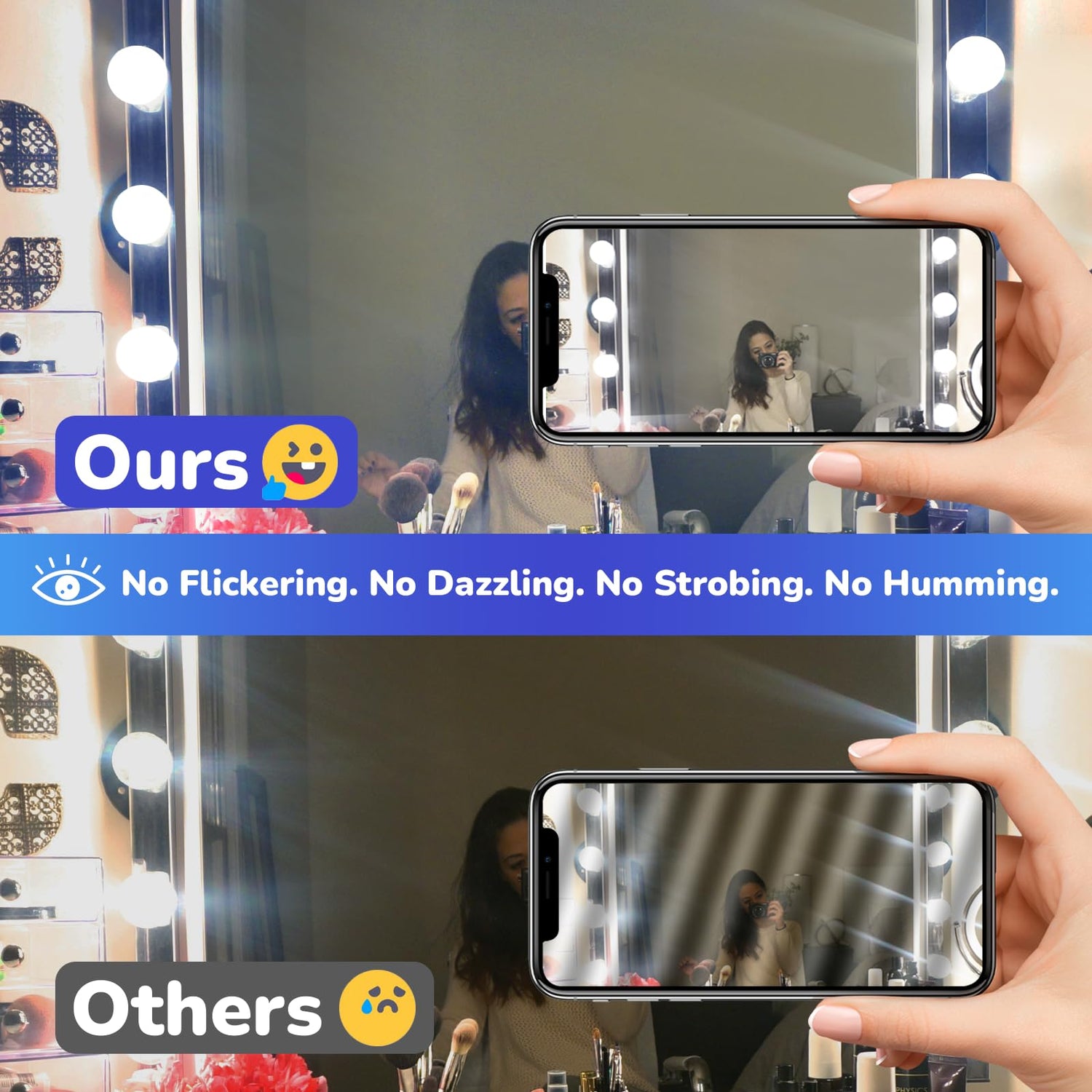 - Impressive Long Lifespan & No Flicker: With less heat output and a long lifespan of 30000 hours, our bath light bulbs 60 watt equivalent provide you with high-quality lighting services. These vanity mirror lights bring you even and balanced light, without any flicker, noise, fluorescence, or buzzing sound