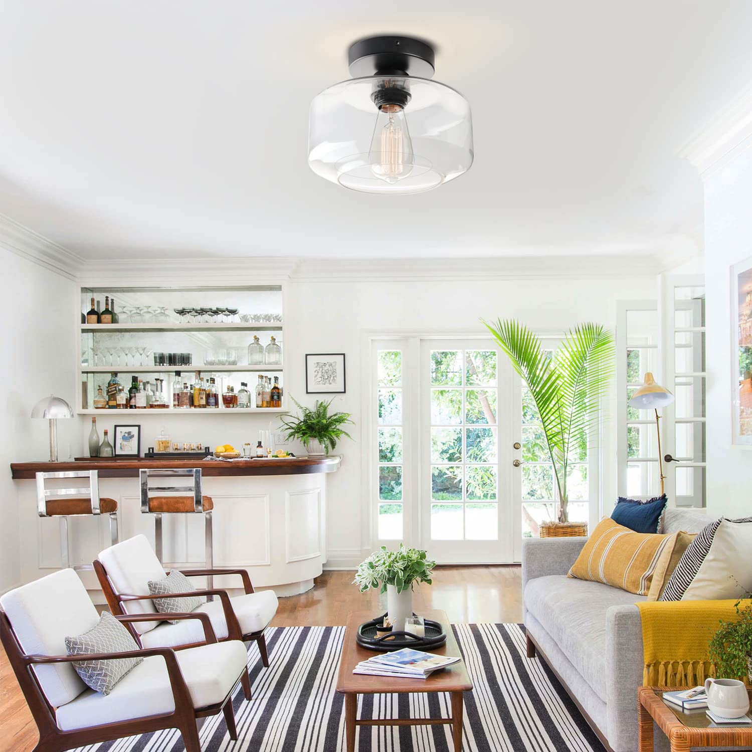 - Wide Application & Perfect Decoration: With the exquisite glass lampshade and Vintage matte base design, the semi-flush mount ceiling light is perfect for Hallway, Entry, Porch, Mudroom, Stairwell, Kitchen, Closet, Kids' Room, Dining Room, Bedroom, Living Room, also ideal for commercial areas: Bar, Cafe, Hotel and Restaurant