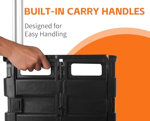MaxWorks 50830 Collapsible Black Rolling Folding Dolly Cart for Teachers - Multi-Functional Teacher Dolly with Extra Storage, Durable Wheels, and Easy-to-Fold Design for Classroom, Office, Shopping