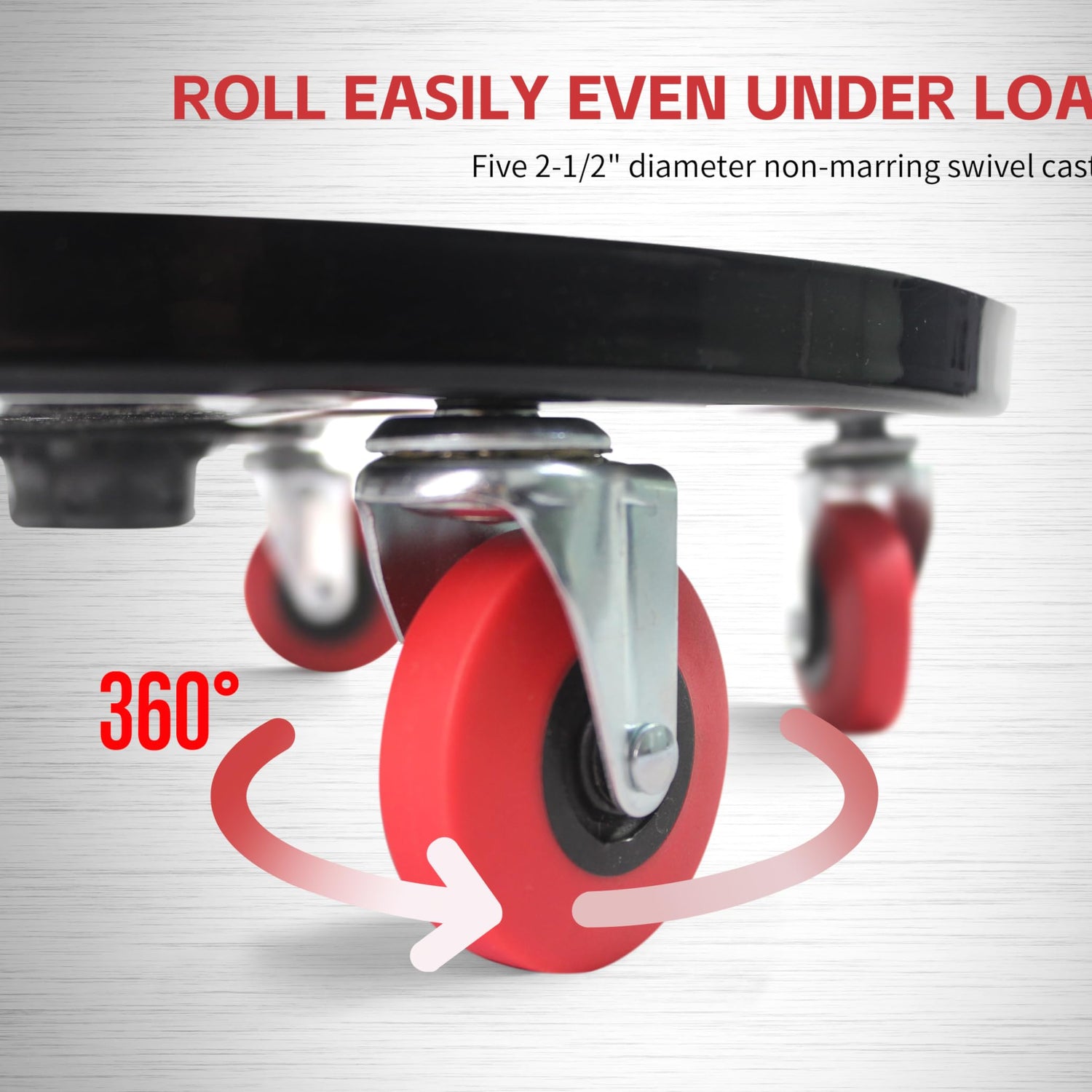 - Five 2-1/2" diameter non-marring swivel castors roll easily even under load