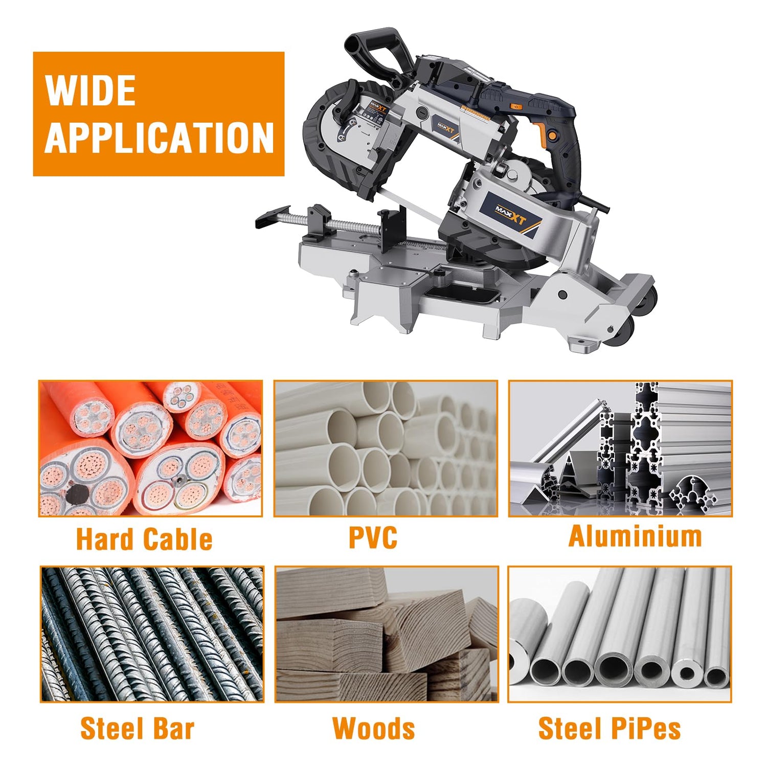 - 【Powerful 10 Amp Motor for High Performance】Experience the unbeatable power of our 10 amp motor that ensures exceptional performance without the risk of burnout. Band saw for cutting metal Cut through steel effortlessly, leaving behind smooth, burr-free kerfs, and without any burns. Our tool operates with low noise levels and offers adjustable cutting angles from 0 to 45 degrees. It swiftly and efficiently saws through a wide range of materials including steel, aluminum, composite cable, angle iron, steel pipe, solid steel, aluminum profile, PVC pipe, and stainless steel