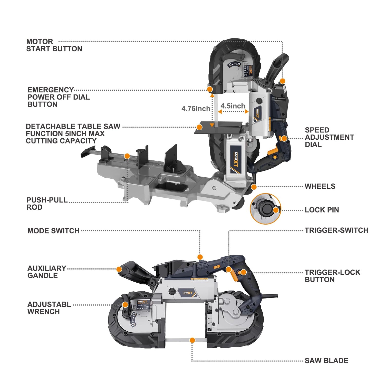 MAXXT Bandsaw with Table Saw, 10 Amp 5 Inch Deep Cut Band Saw with Lightweight Aluminum Base, Variable Speed Handheld Automatic Multipurpose Cut with Wheels Metal Saw, Portable Bandsaws for Metal Wood
