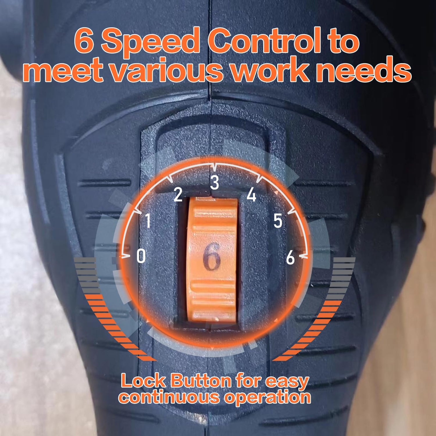 - 6 speed adjustable: The surface conditioning tool has a built-in speed adjustable function, allowing users to accurately control power according to different work requirements, ensuring safe operation. Effectively allocate according to specific needs while improving work efficiency while maintaining a high level of safety